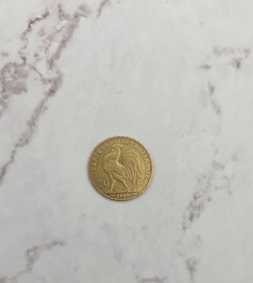 One 20 franc gold coin Coq 1909, weight: 6.