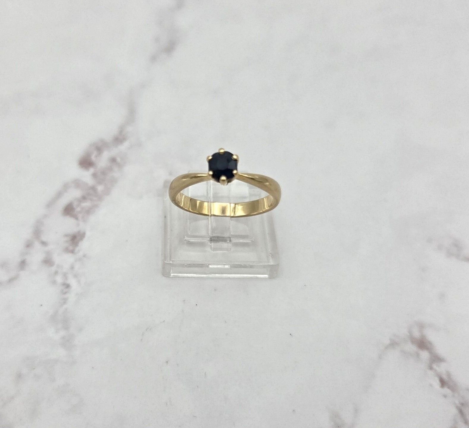 A ring in 750 thousandths yellow gold, set with a sapphire - PB: 2.9g - Size: 52/53 - Hallmarked eagle head - Diameter of the sapphire: 4.8mm