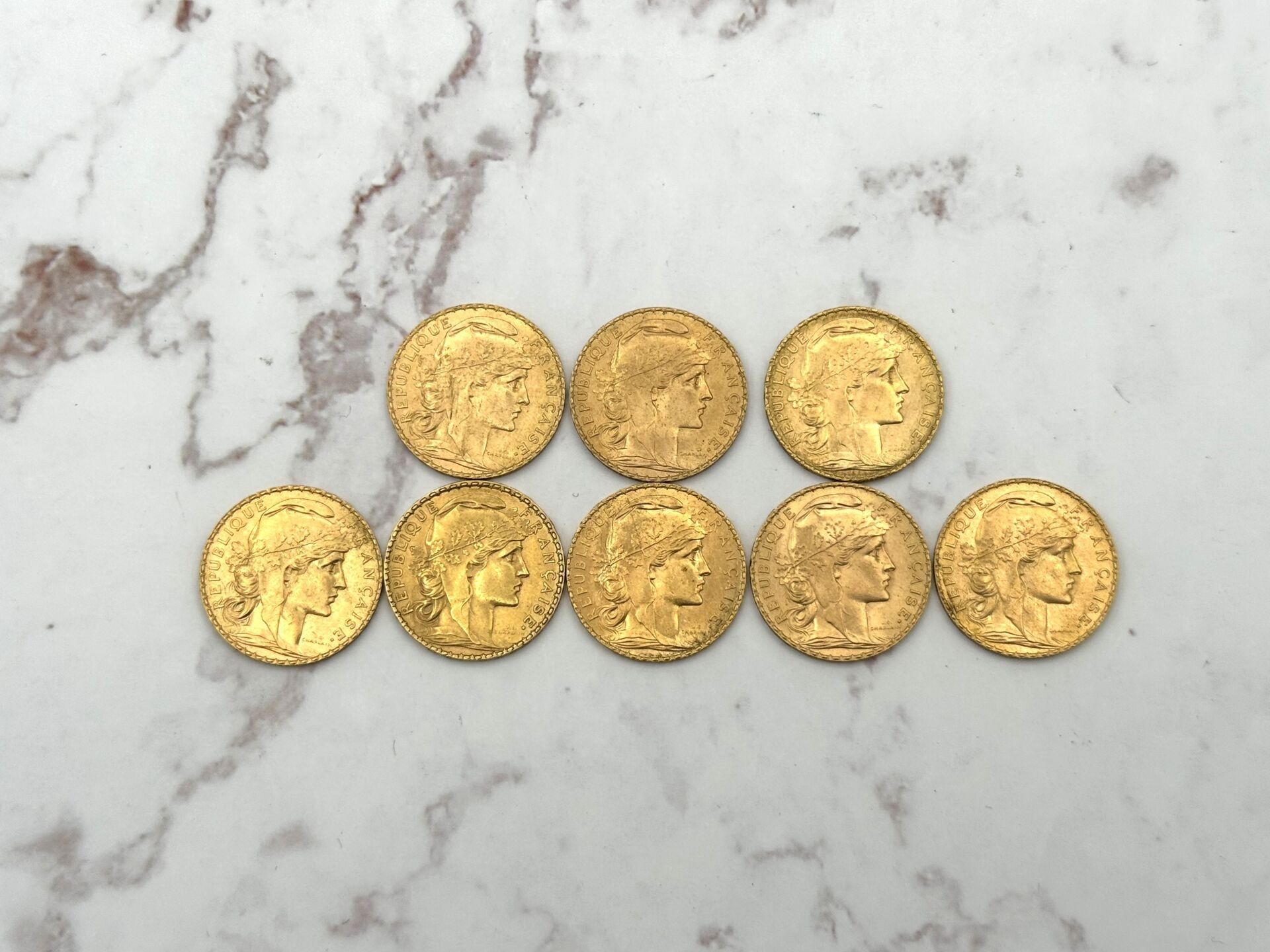 8 coins of 20 francs gold Marianne, 1907, 1908, 1909, 1910, …