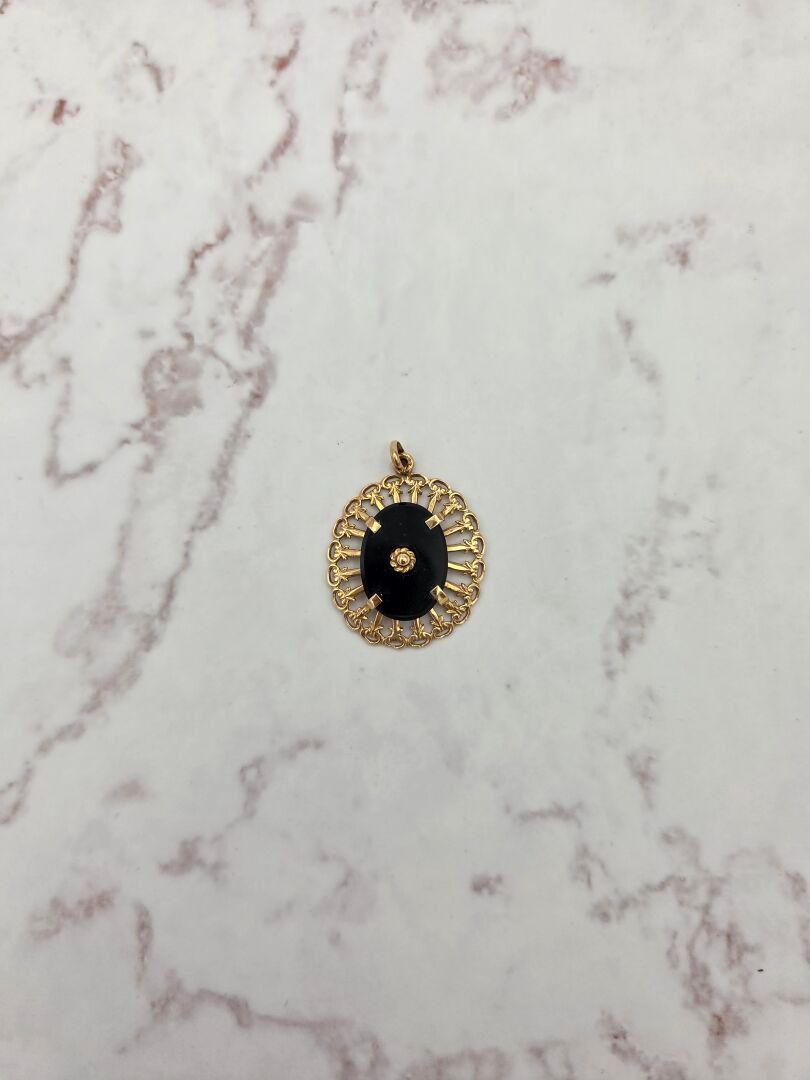 Pendant in 750 thousandths yellow gold set with an onyx - PB: 2.1 g