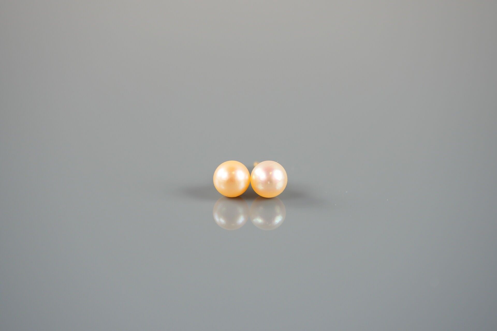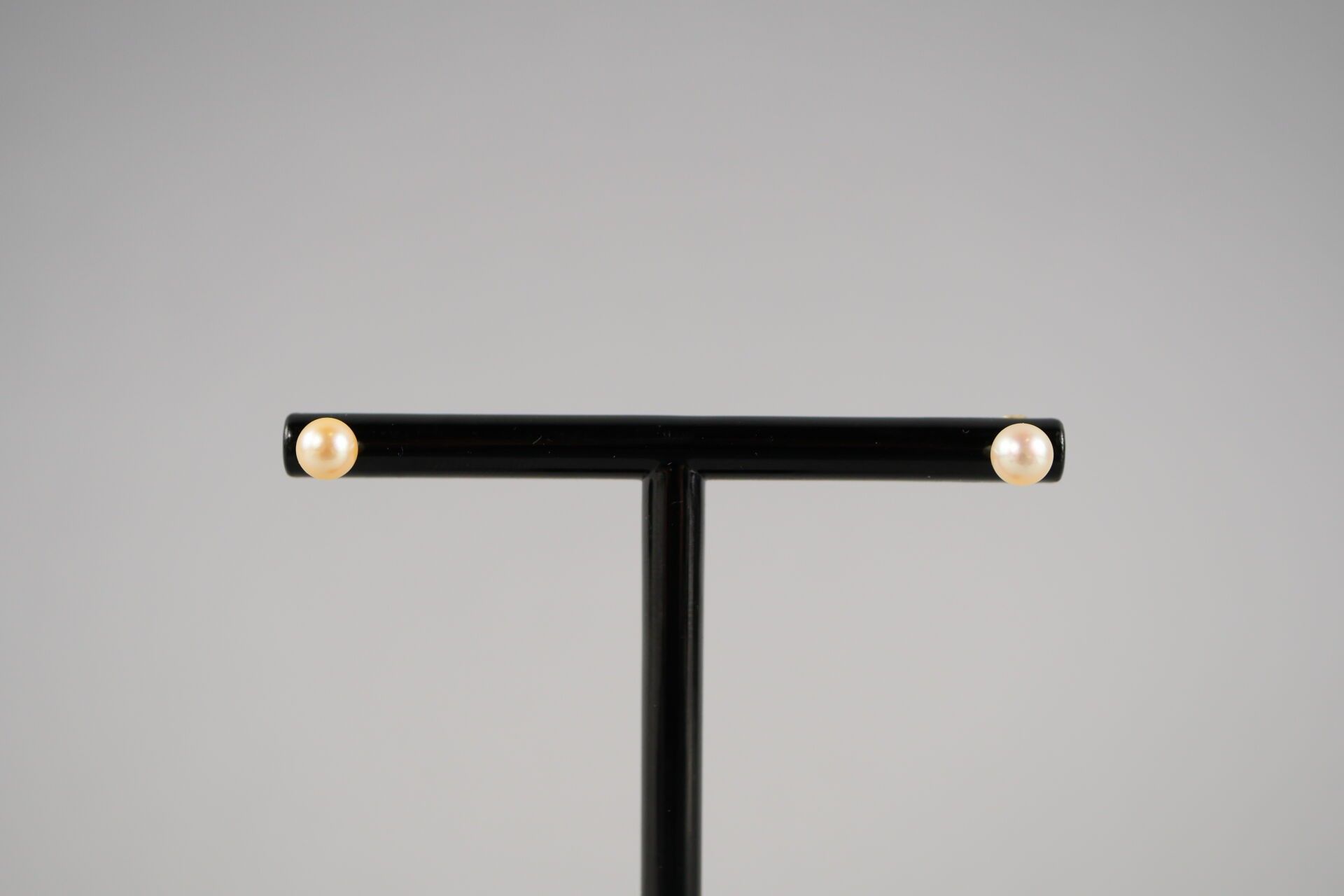Pair of 18K-750 thousandths yellow gold stud earrings set with a pearl.