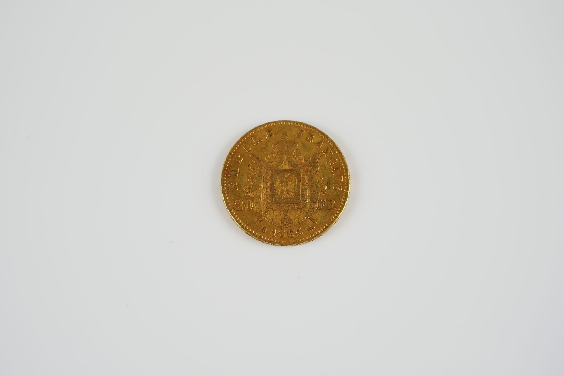 1 Gold coin. Bar. Napoleon III Emperor. 20 Francs. 1865.