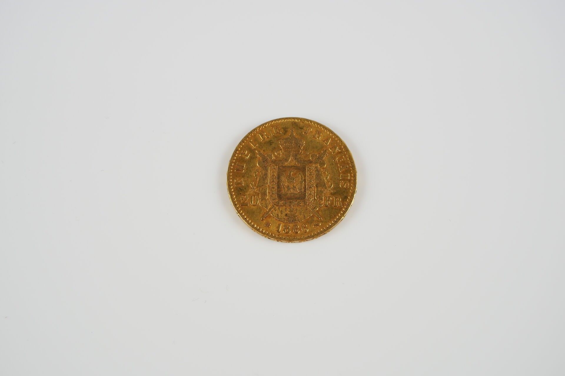 1 Gold coin. Bar. Napoleon III Emperor. 20 Francs. 1866.