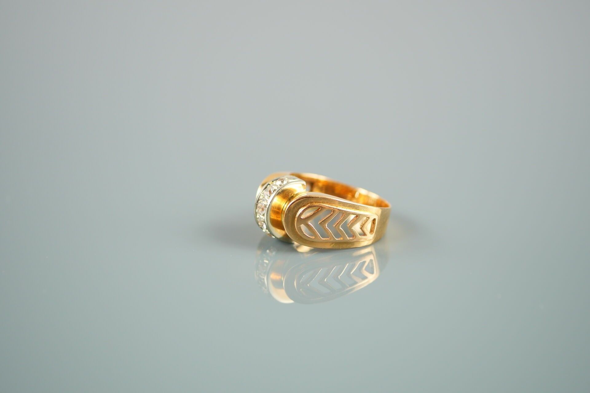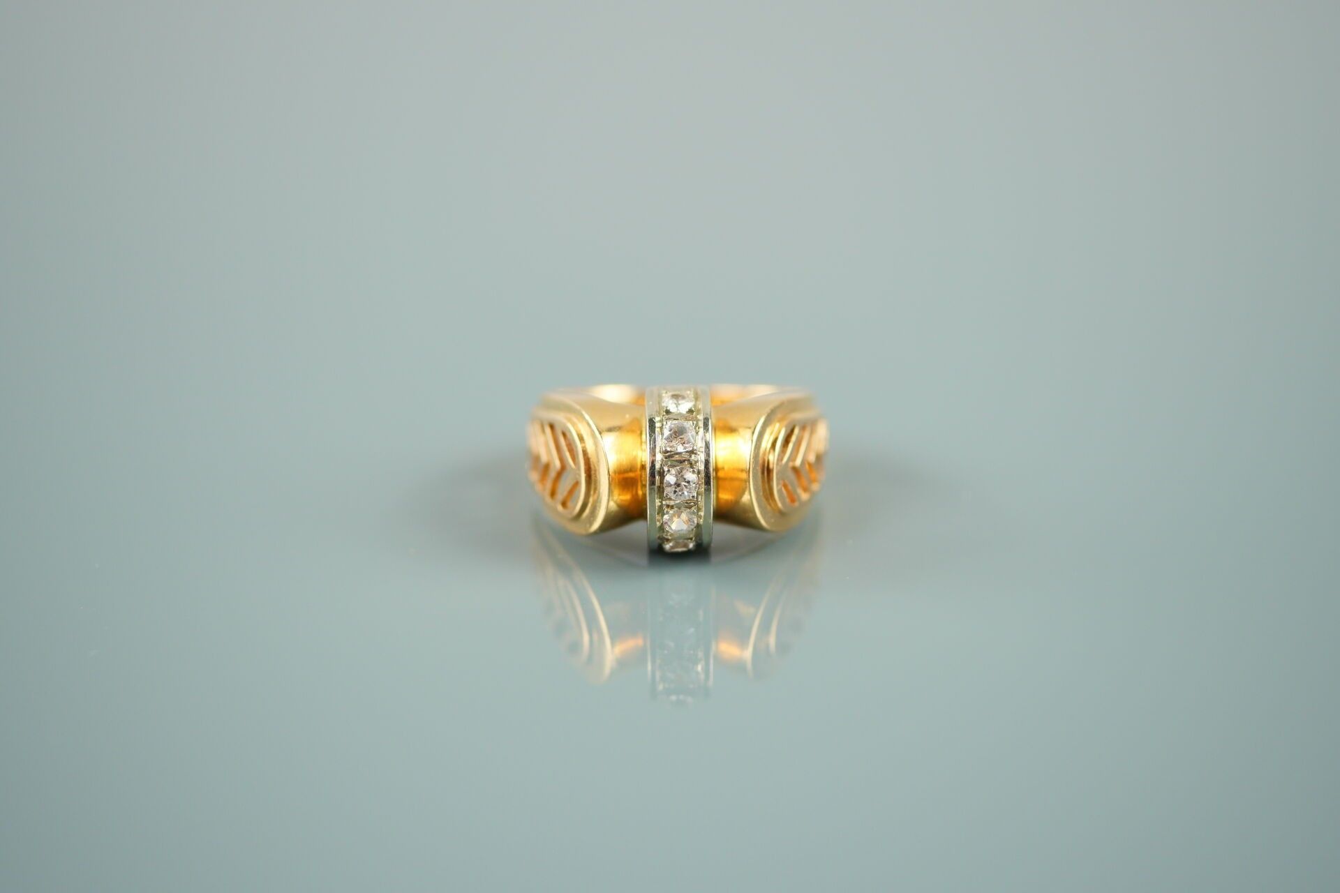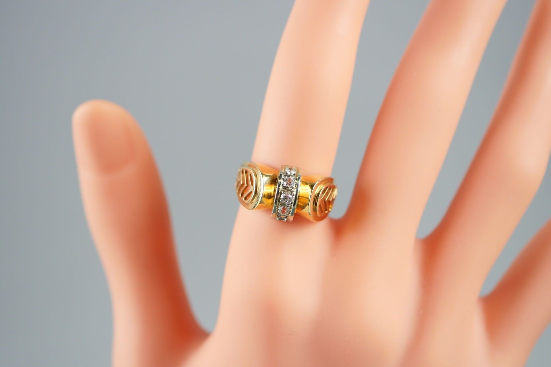 18K-750 thousandths yellow gold ring set with imitation white stones.