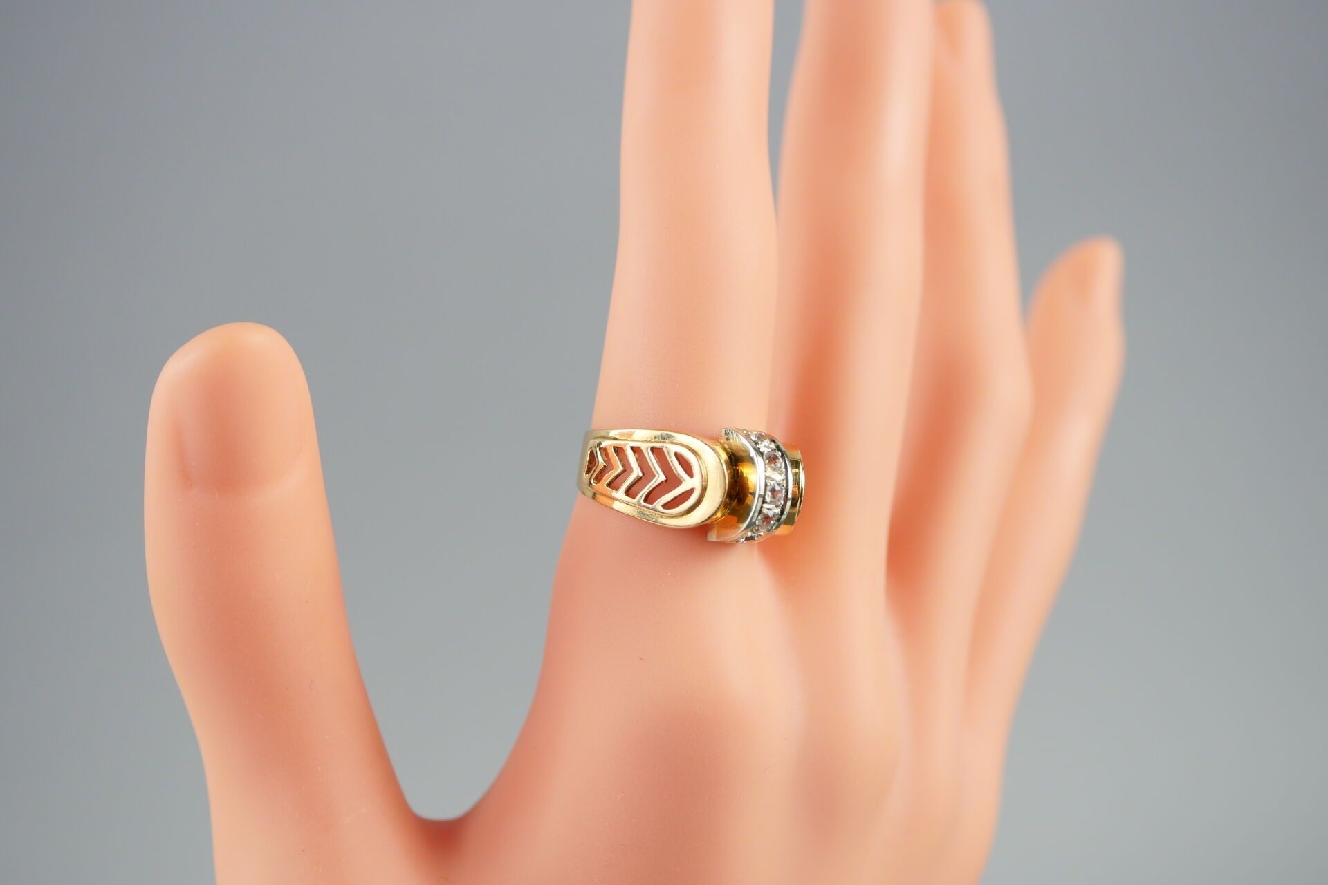 18K-750 thousandths yellow gold ring set with imitation whit…