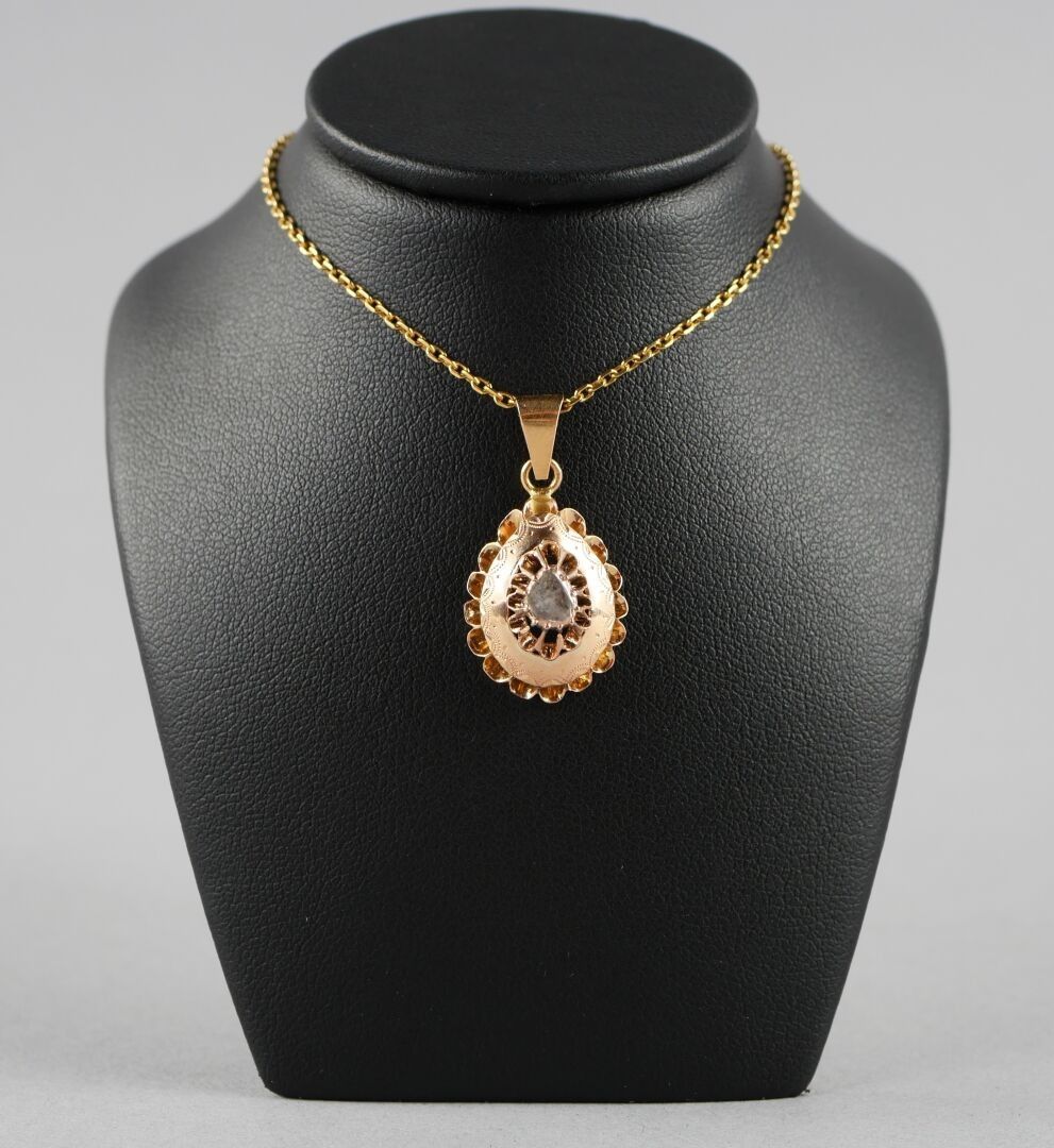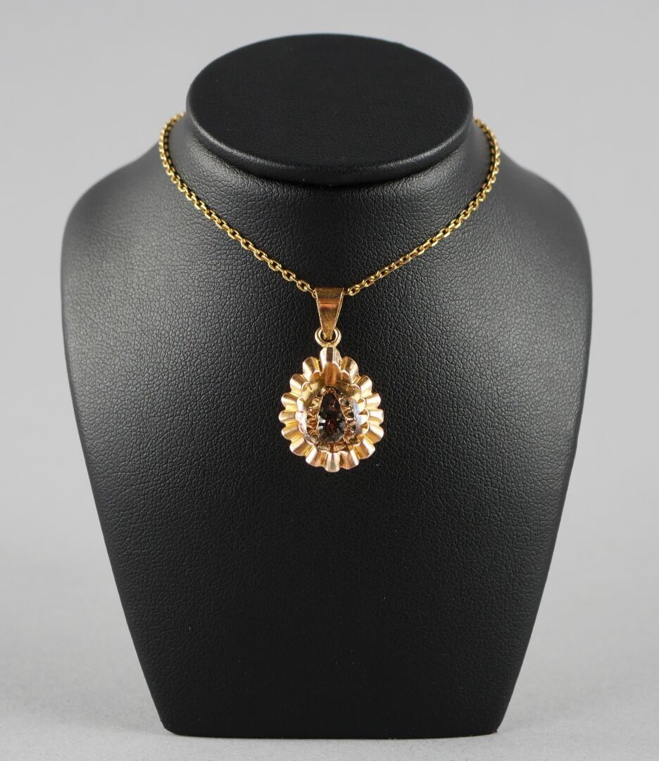 18K-750 thousandths yellow gold pendant set with a rose-cut …
