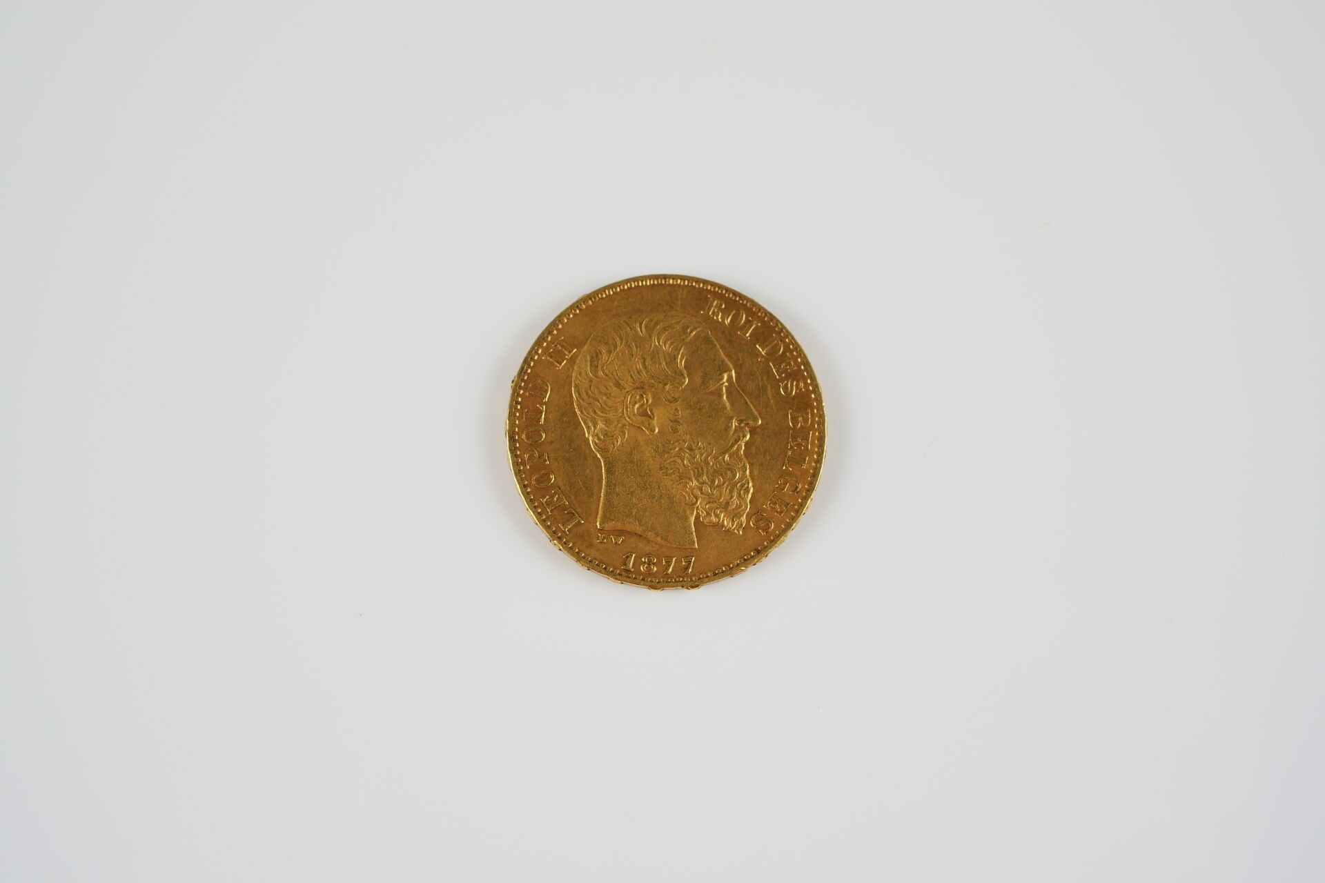 1 Gold coin. Leopold II King of the Belgians. 20 Francs. 1877.