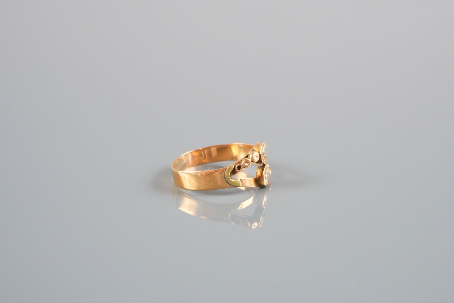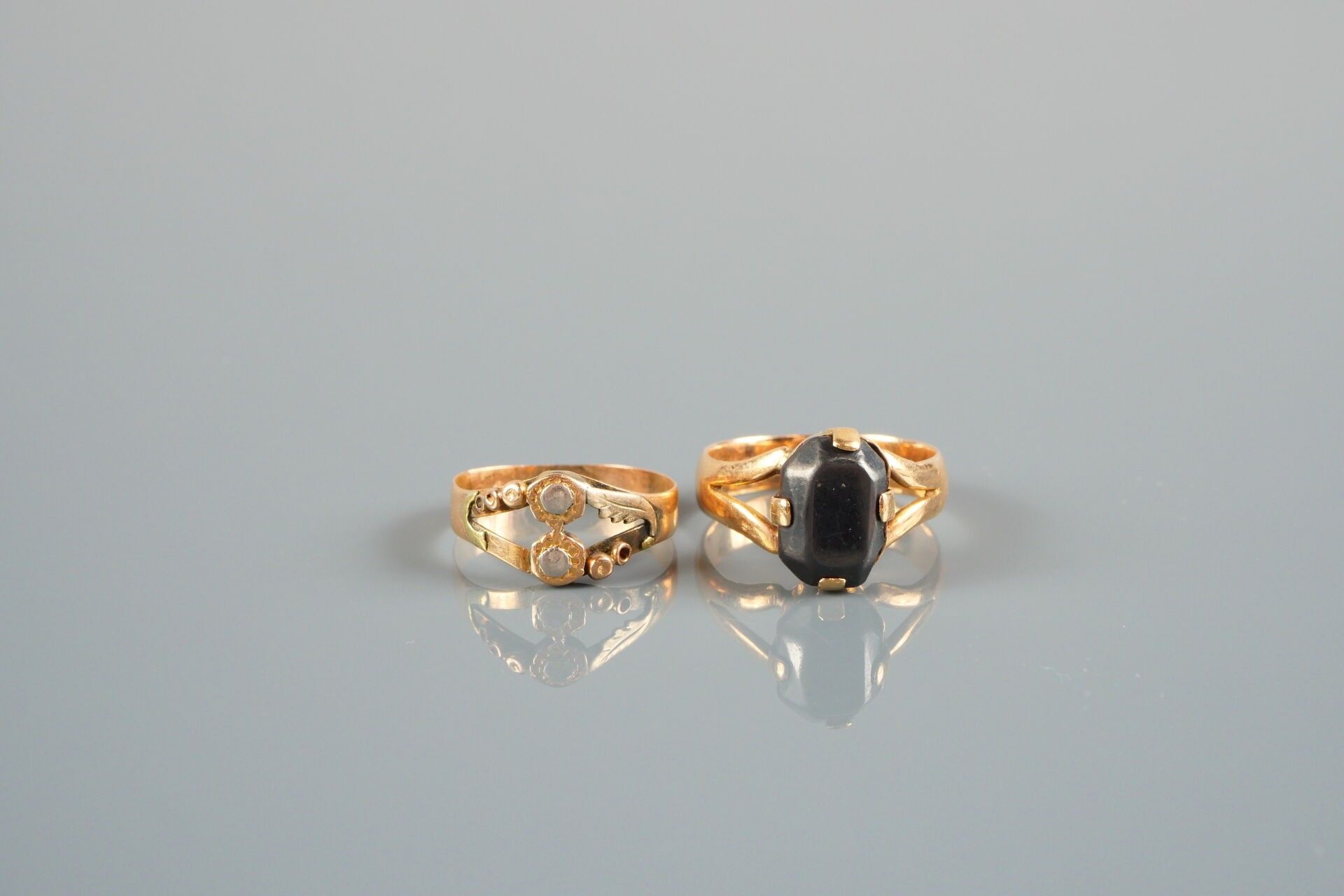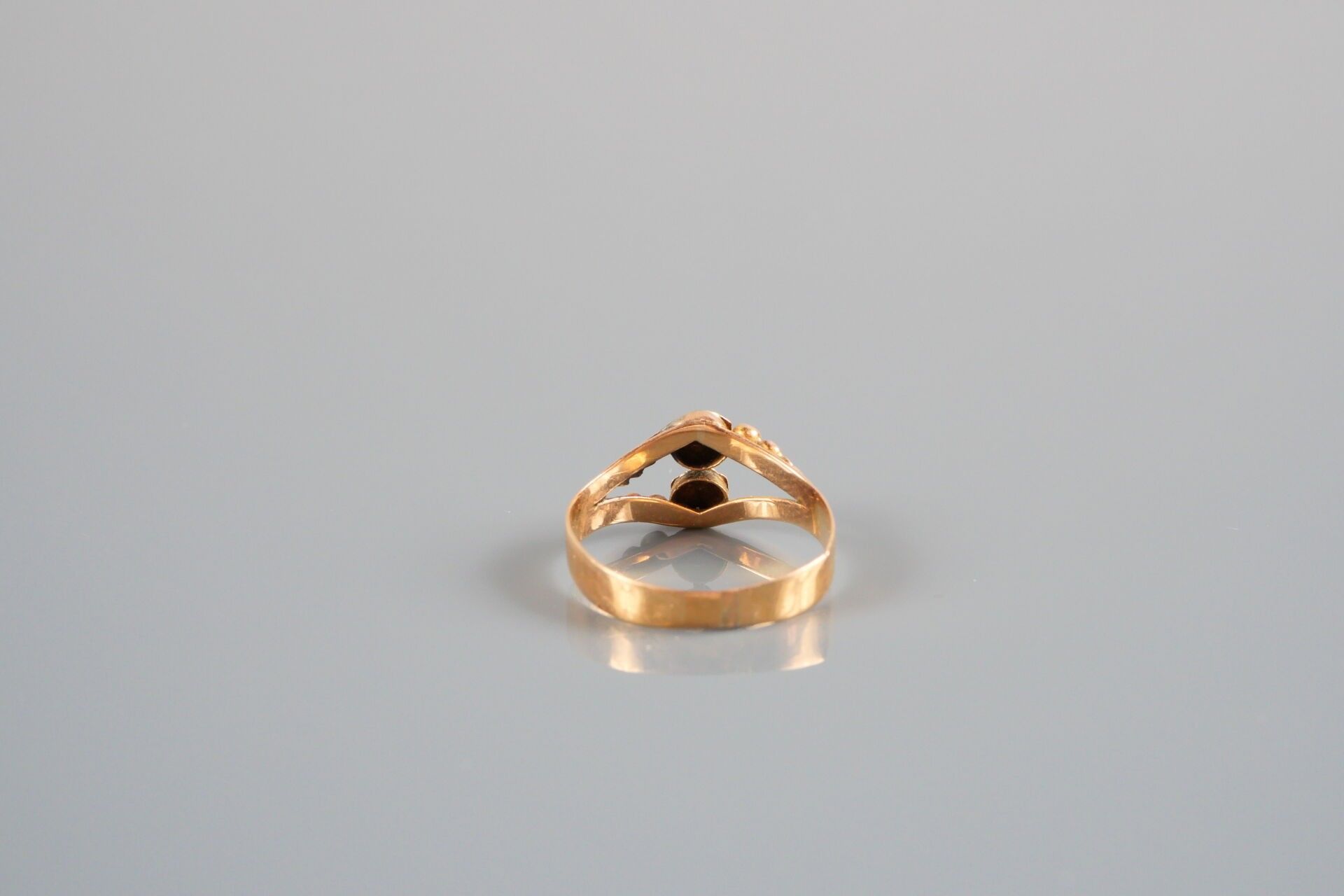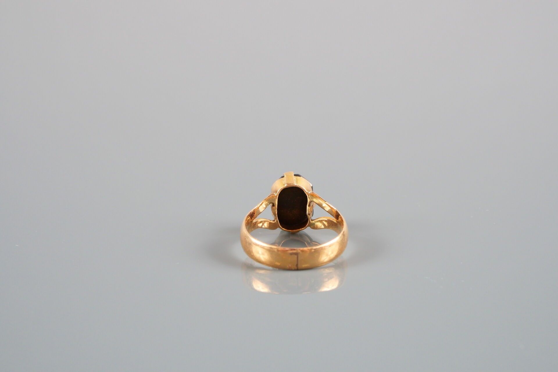 18K-750 thousandths yellow gold ring set with a dark stone: