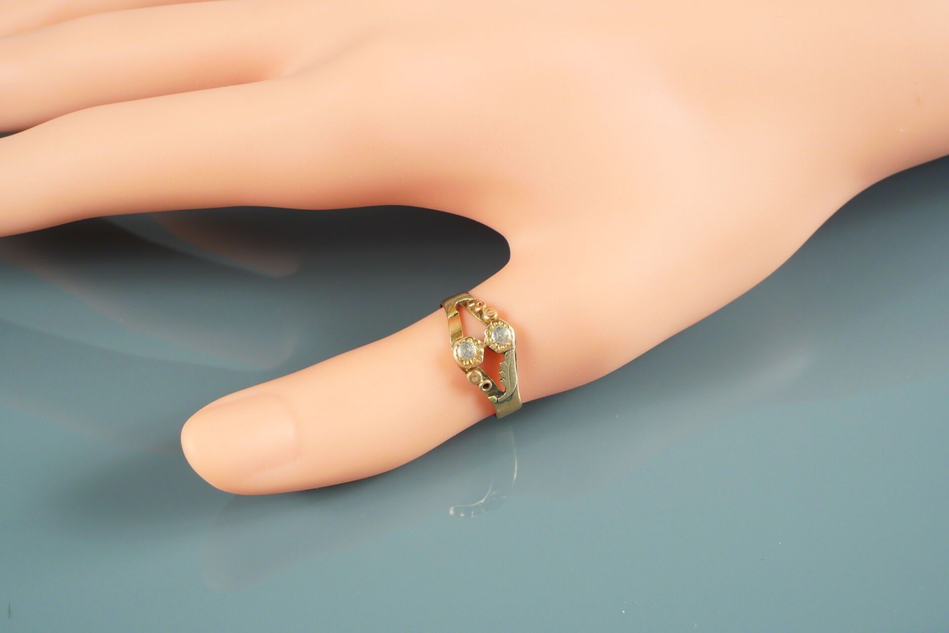 (Wear, scratches, traces of soldering to the rings and chips to the stone. Sold as is)