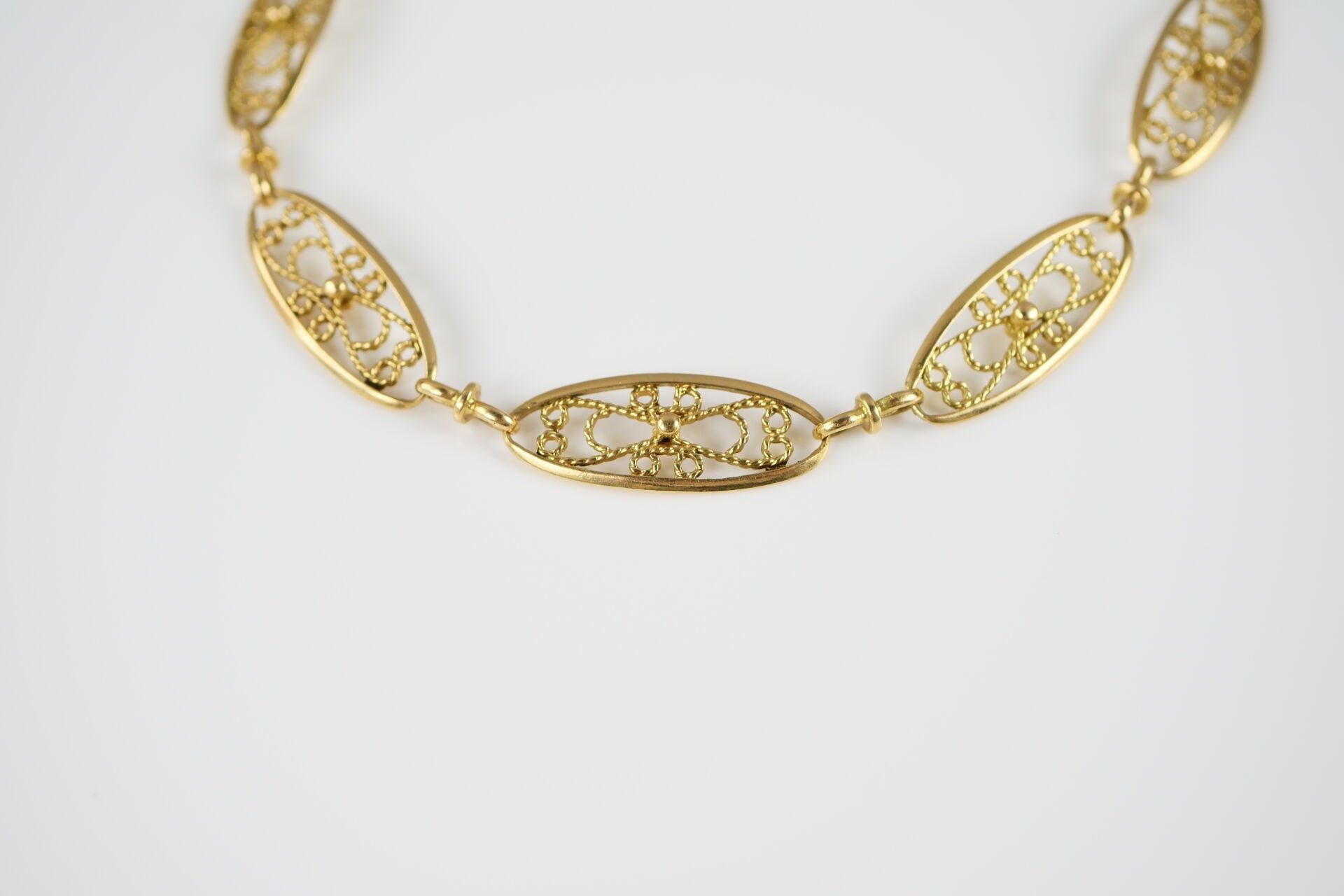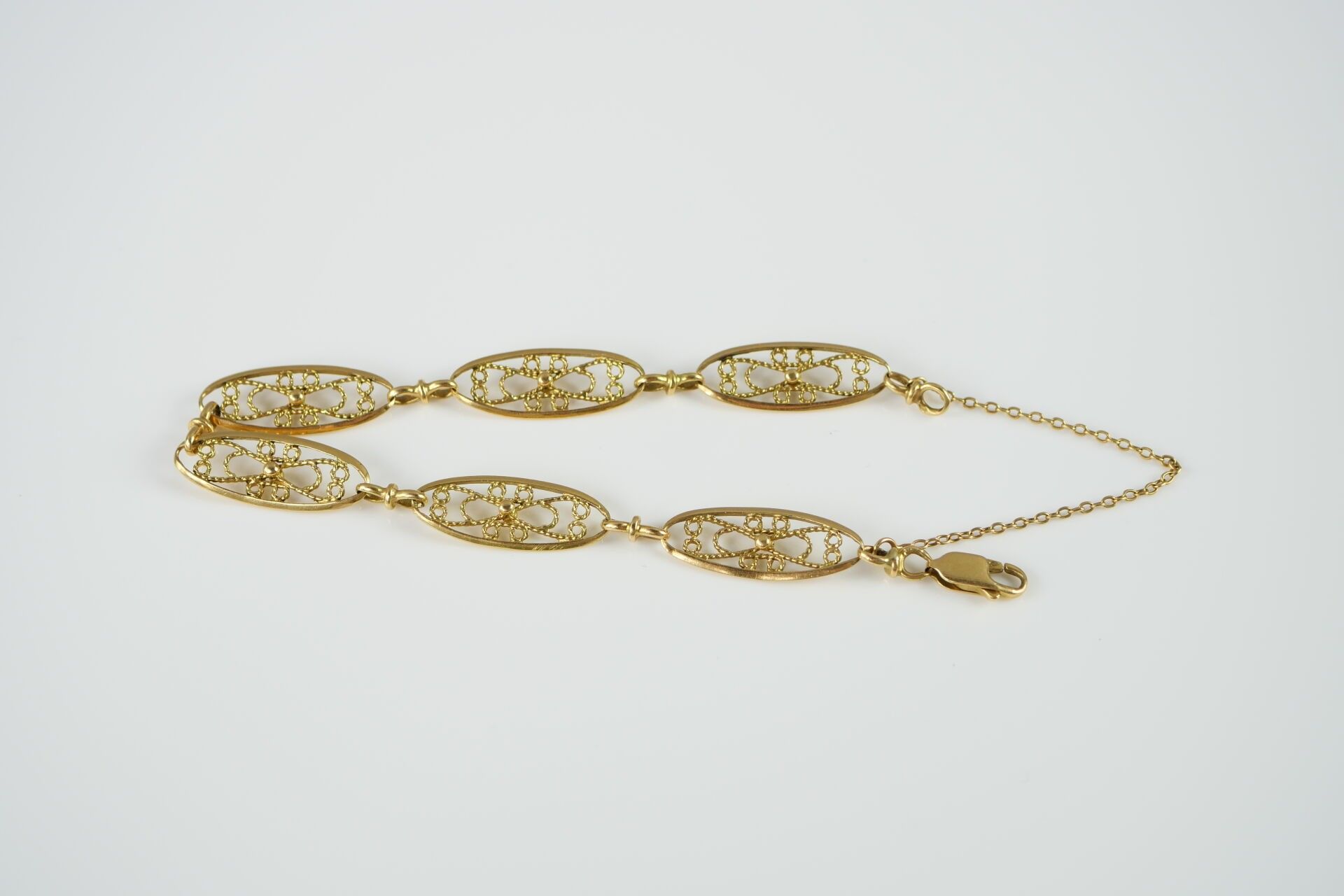 18K-750 thousandths yellow gold filigree mesh bracelet.