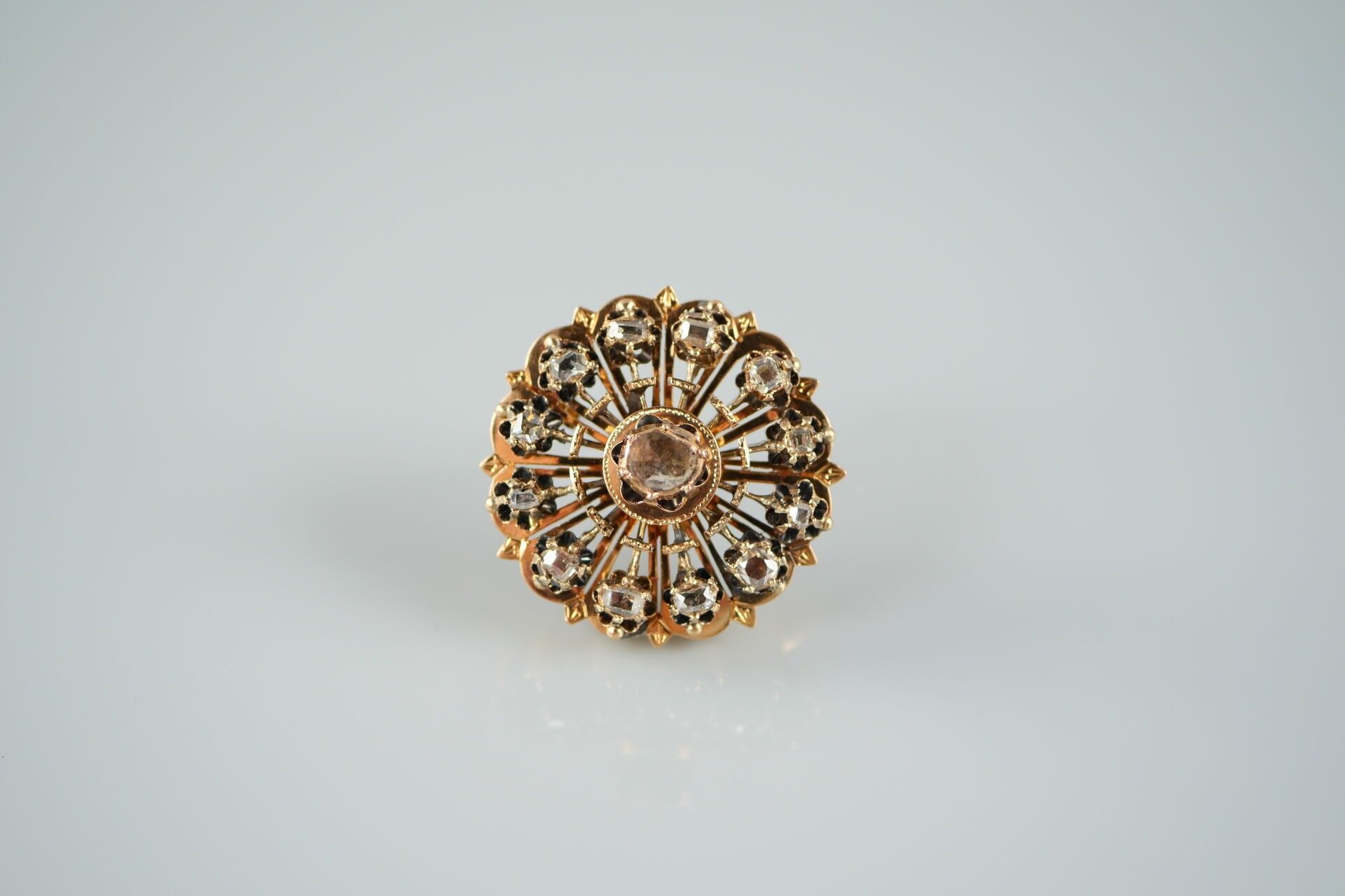 Brooch in 18K-750 thousandths yellow gold and silver set wit…