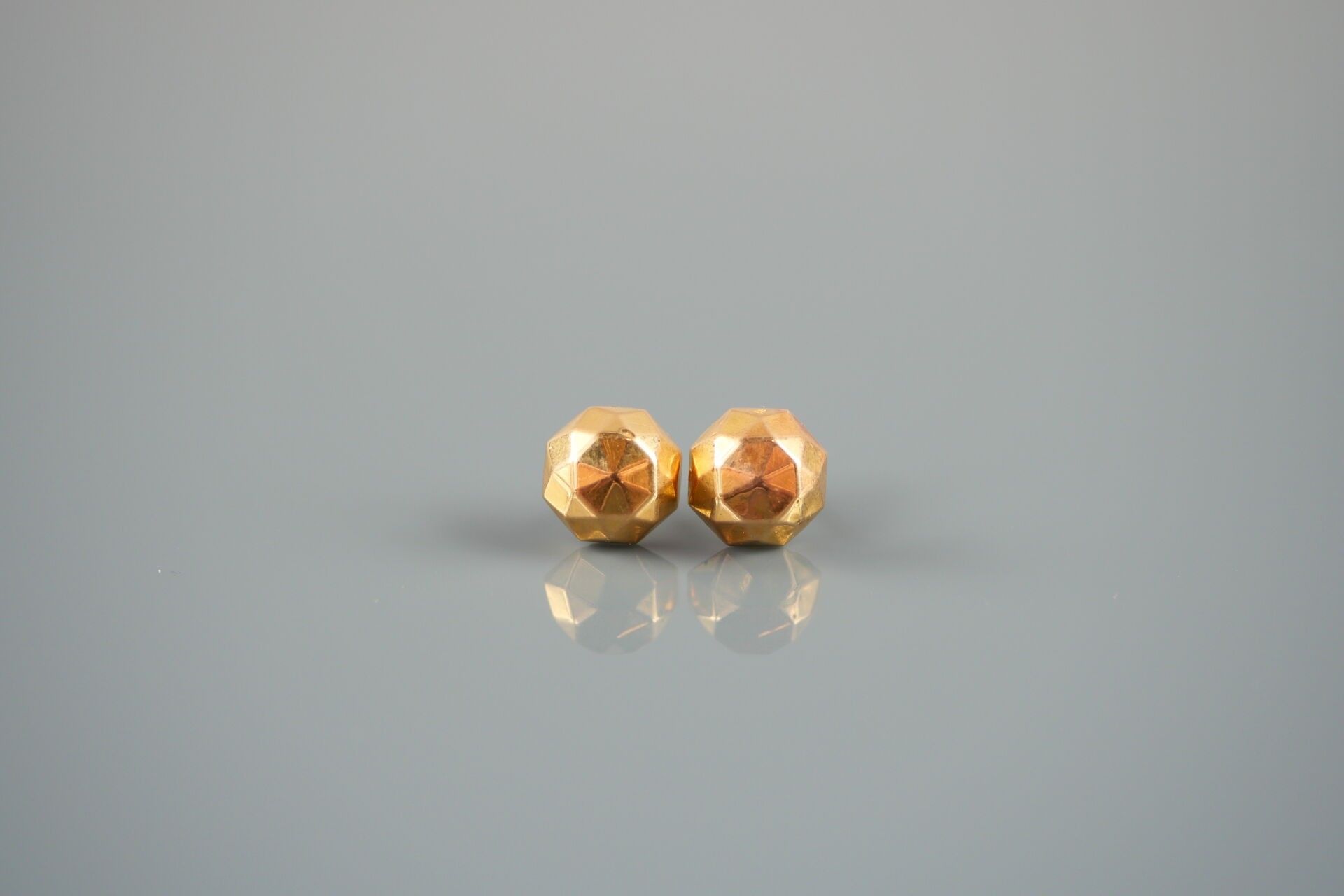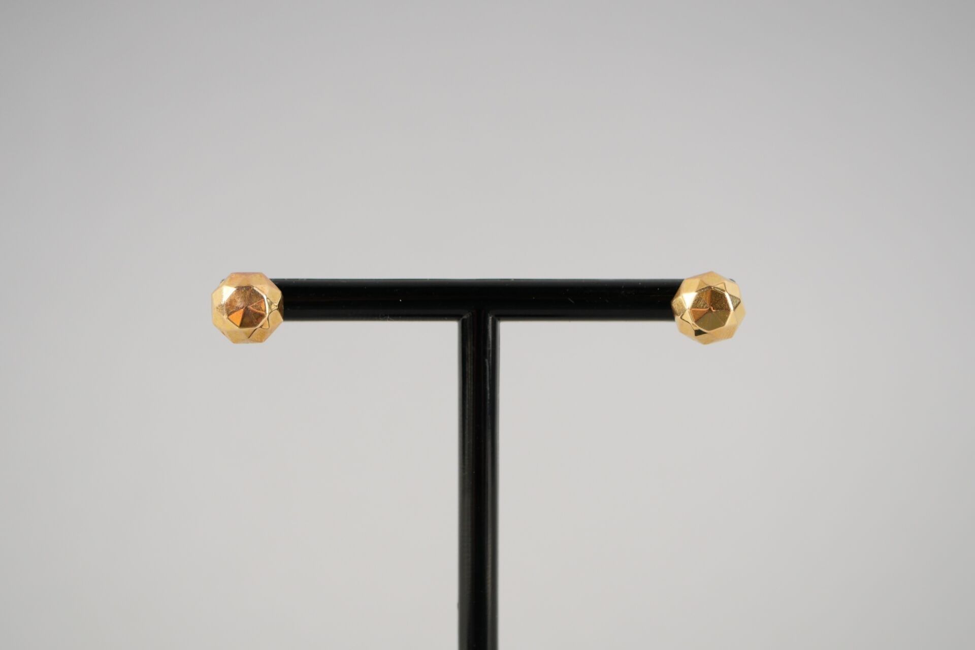 Pair of facetted ear studs in 18K-750 thousandths yellow gold.
