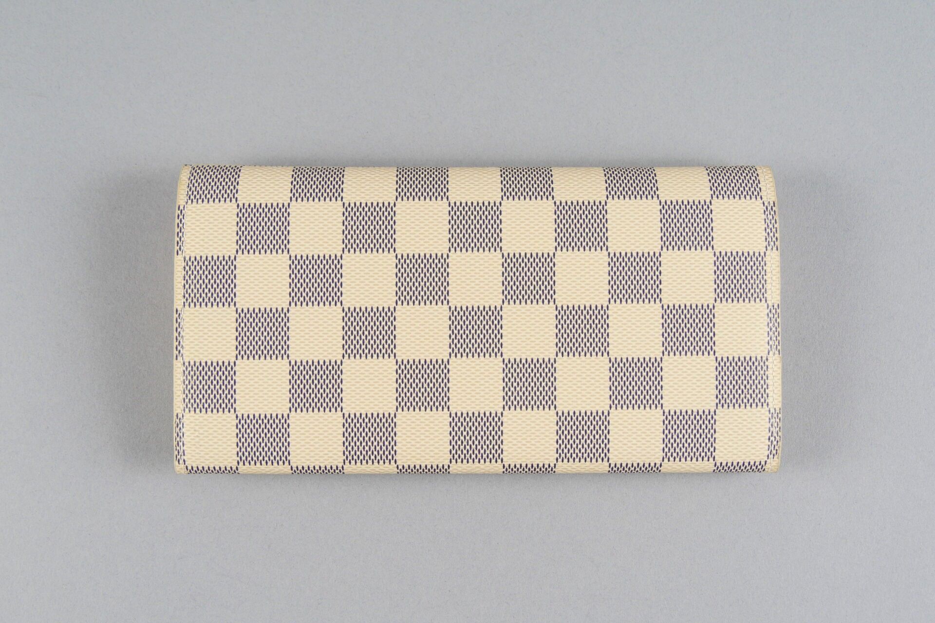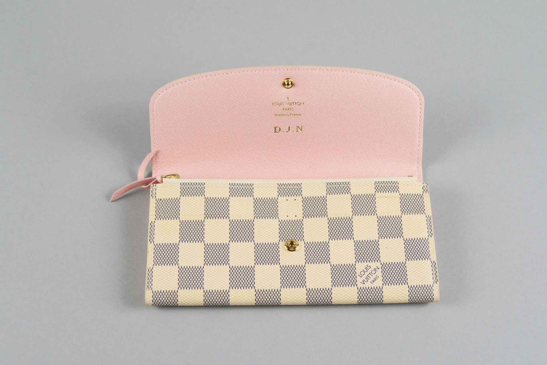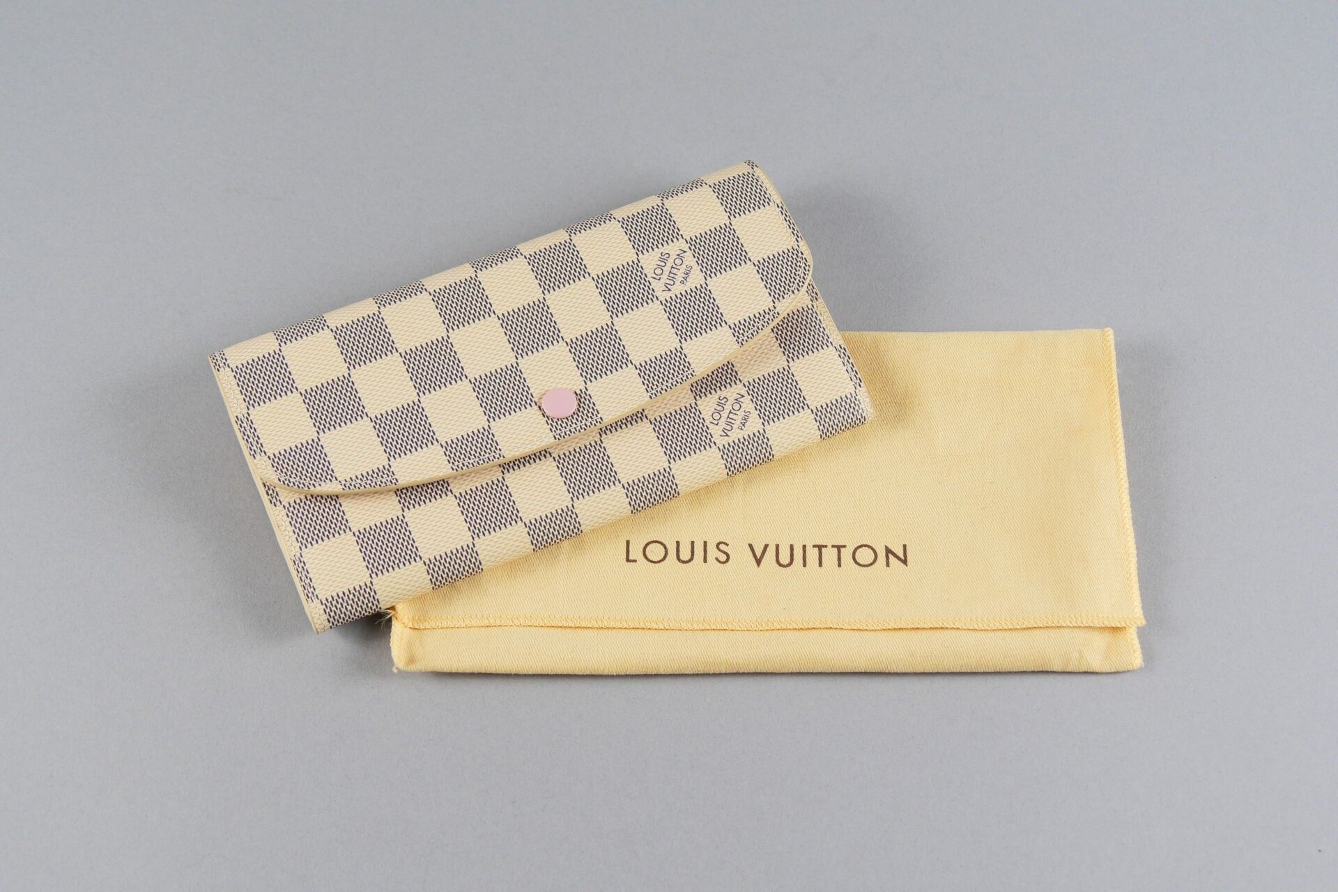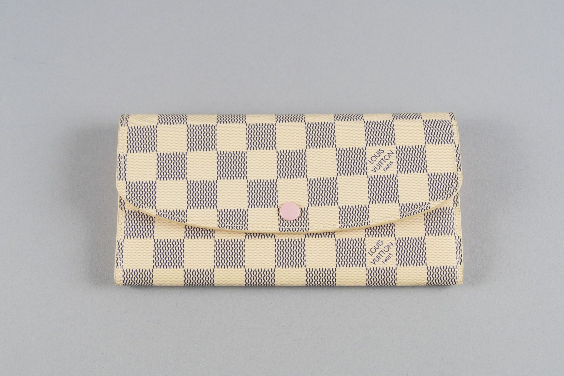 LOUIS VUITTON. Emilie wallet in azure chequered canvas, pink…