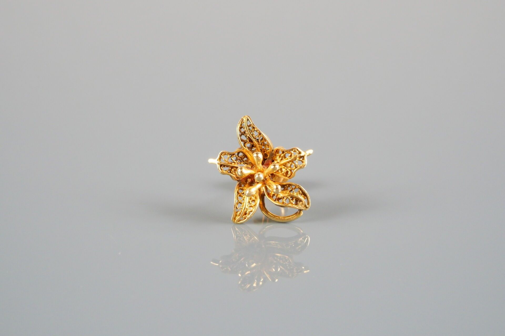 - Pair of ear studs decorated with a filigree flower.