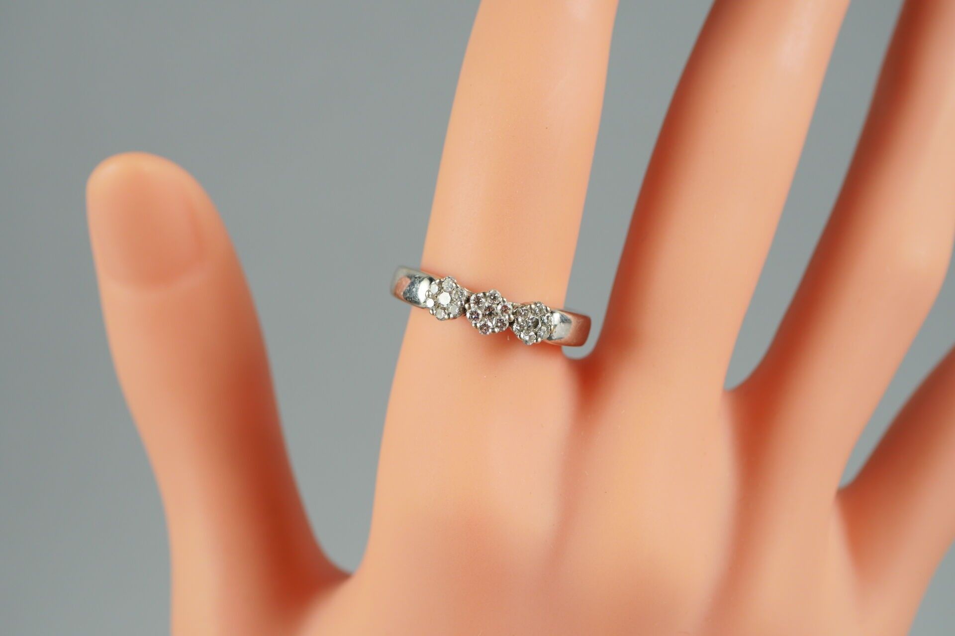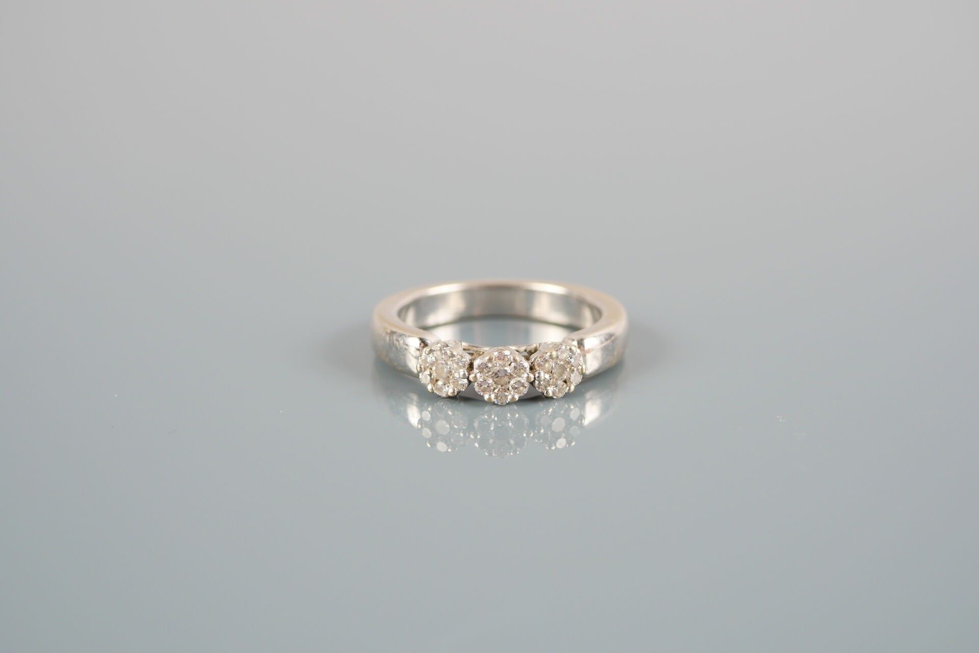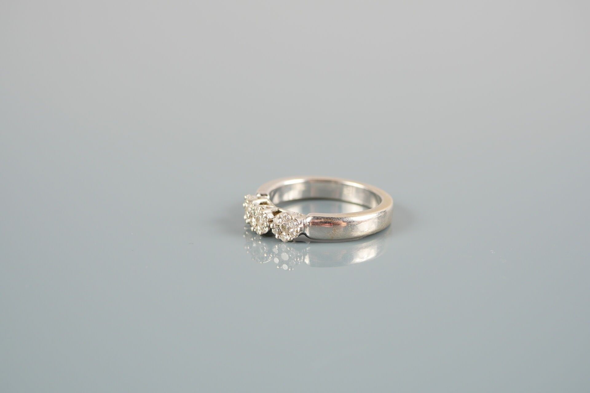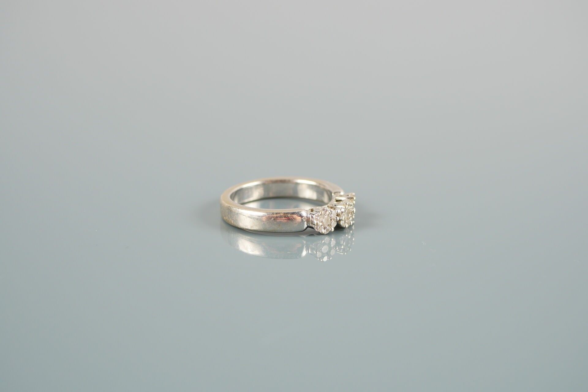 18K-750 thousandths white gold ring set with diamonds.