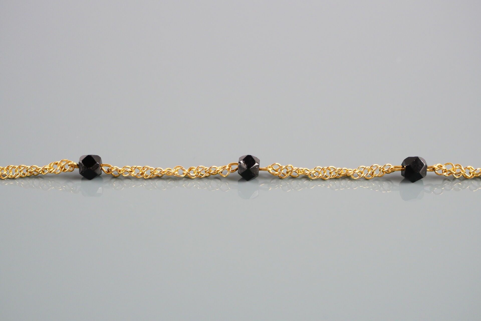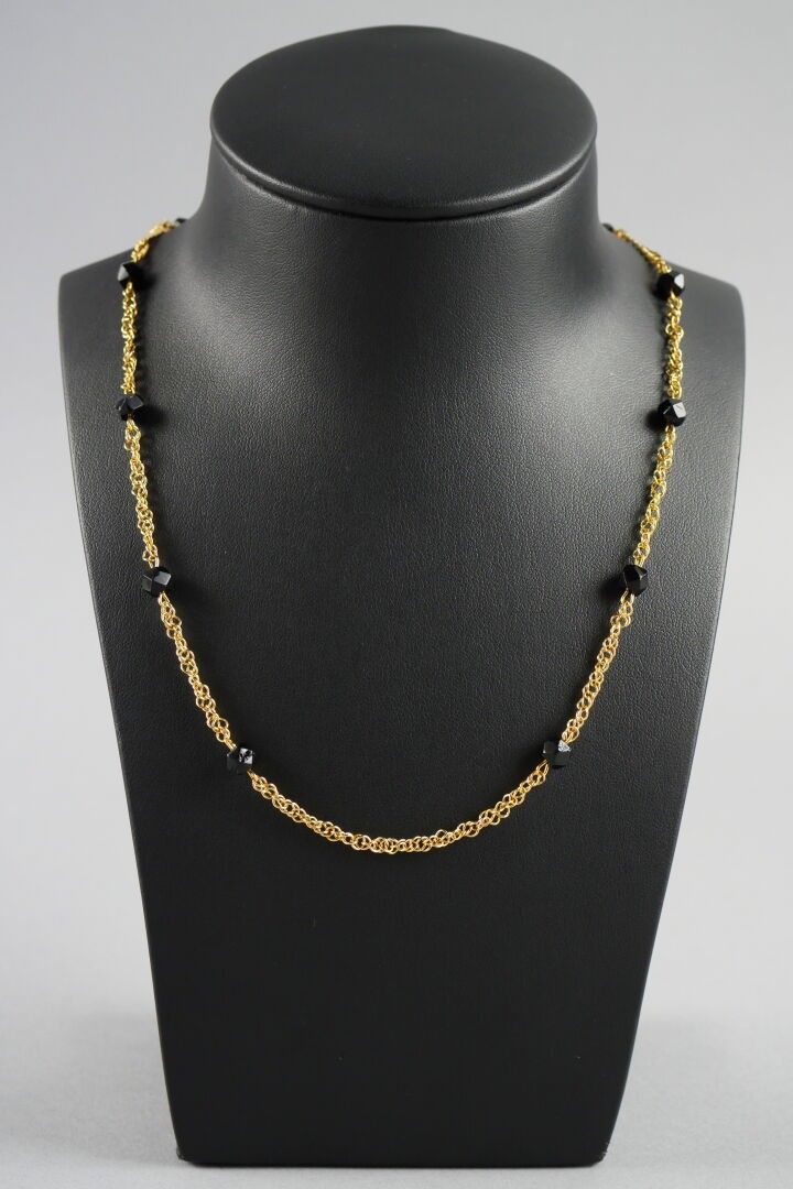 18K-750 thousandths yellow gold chain or necklace set with faceted jet.