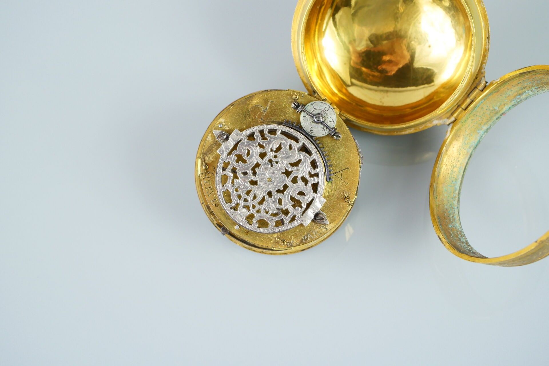 Mechanical movement, verge escapement, openworked cock, signed "Hervé A Paris" on the plate