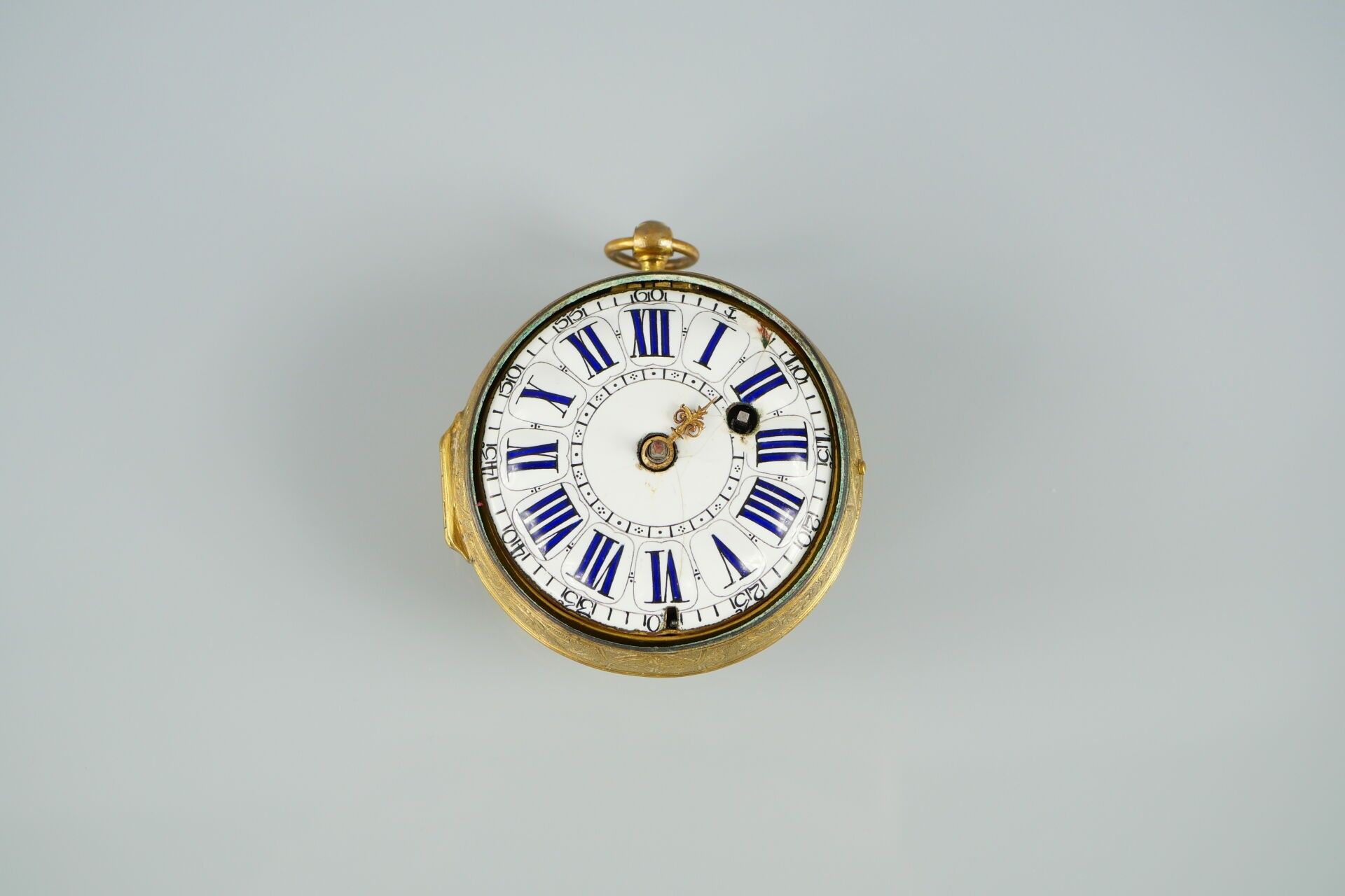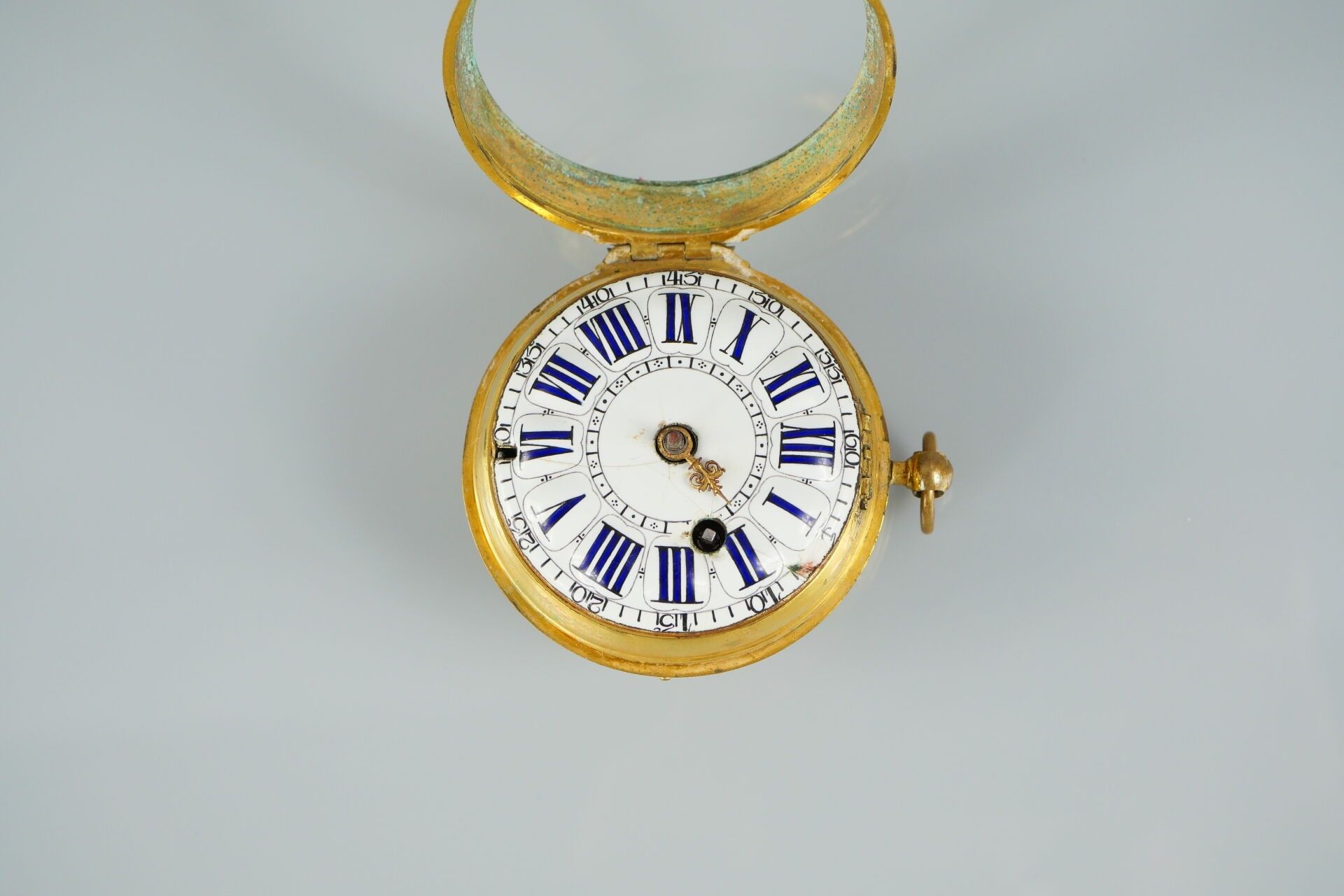 Enamel dial (accident), Roman numerals for the hours and Arabic numerals for the minutes, opening at 3 o'clock for the winding key