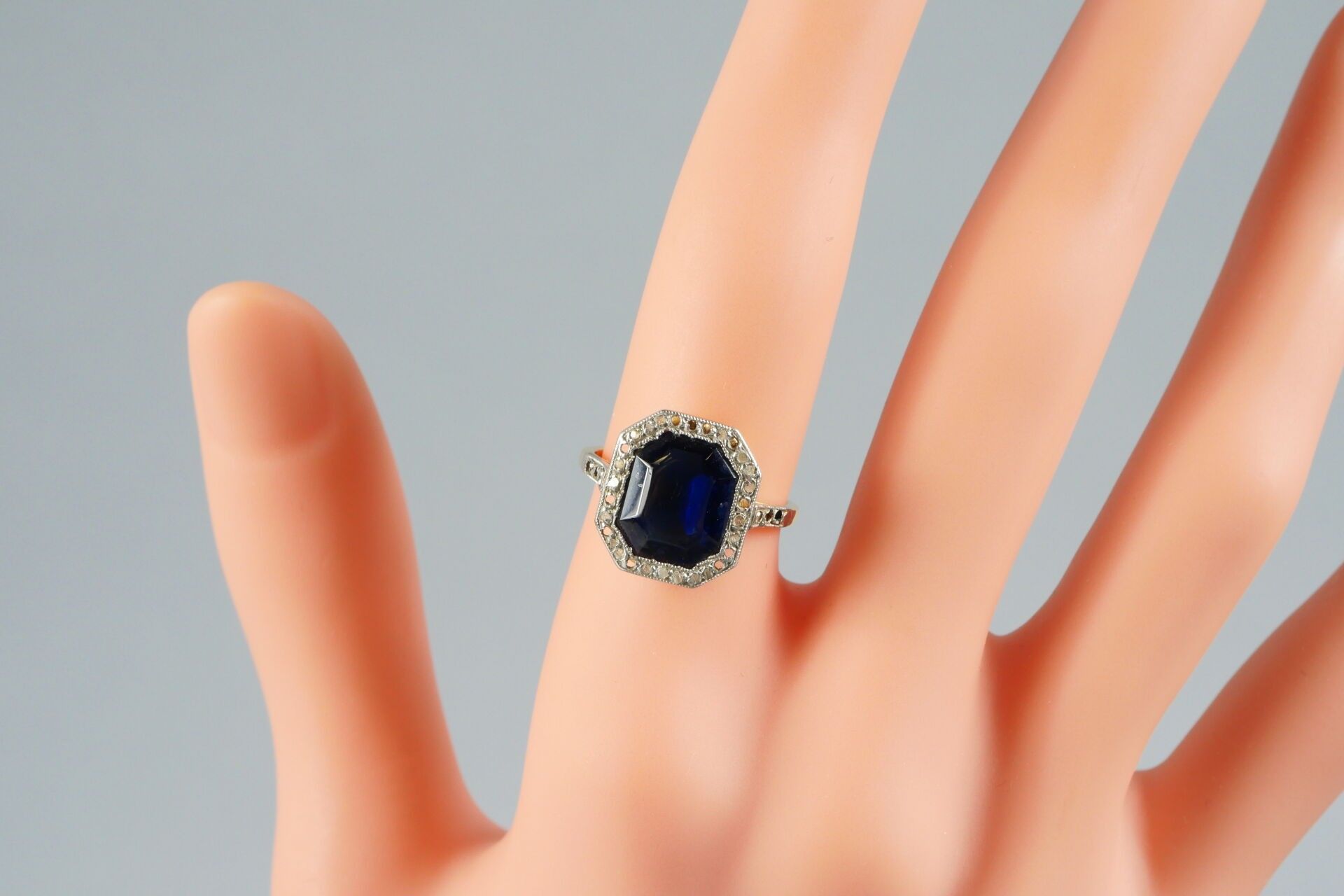(Worn, scratched and missing stones. Soldering marks on the ring. Sold as is)
