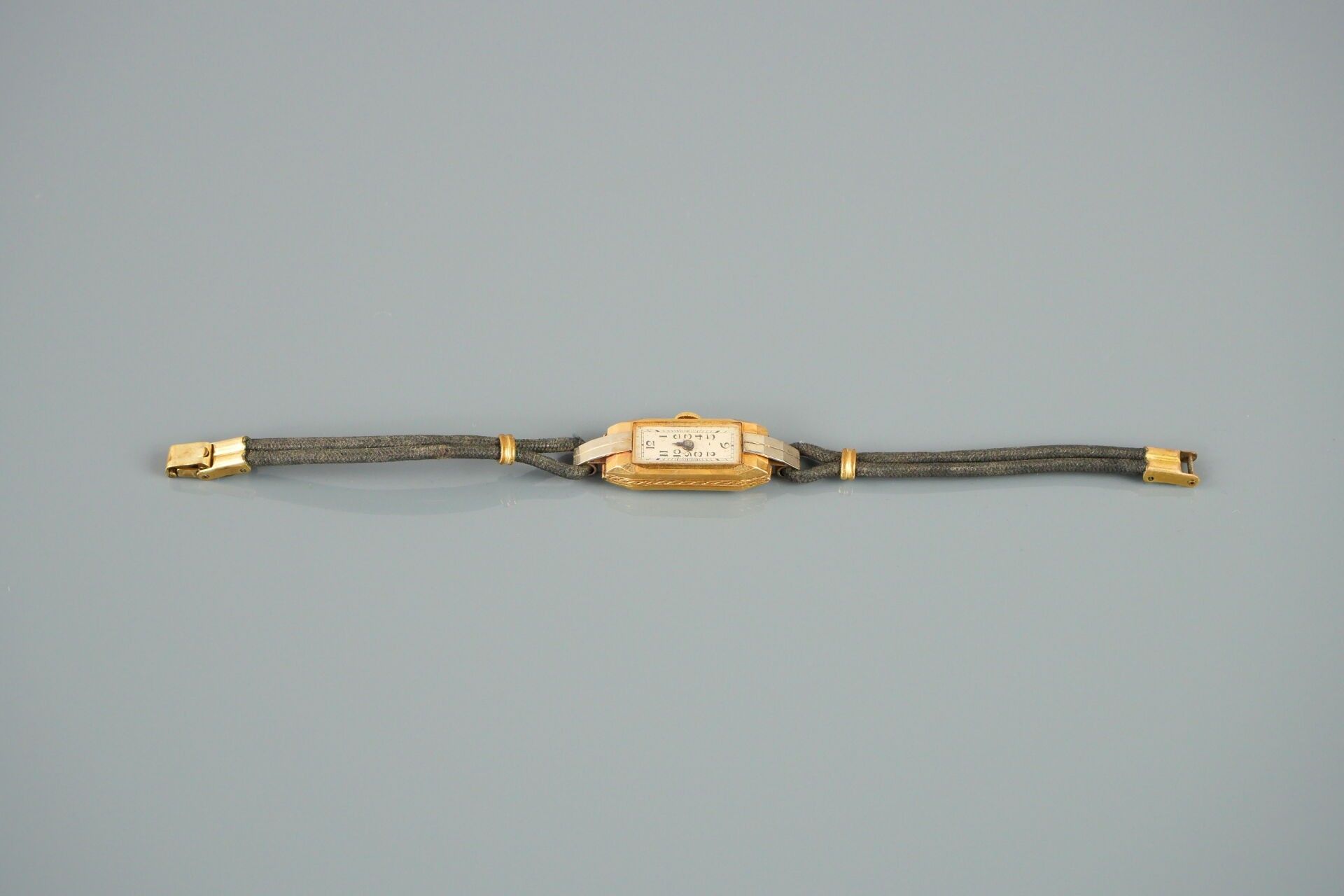 - Ladies' watch with 18K-750 thousandths gold case. Rope and gilt metal bracelet.