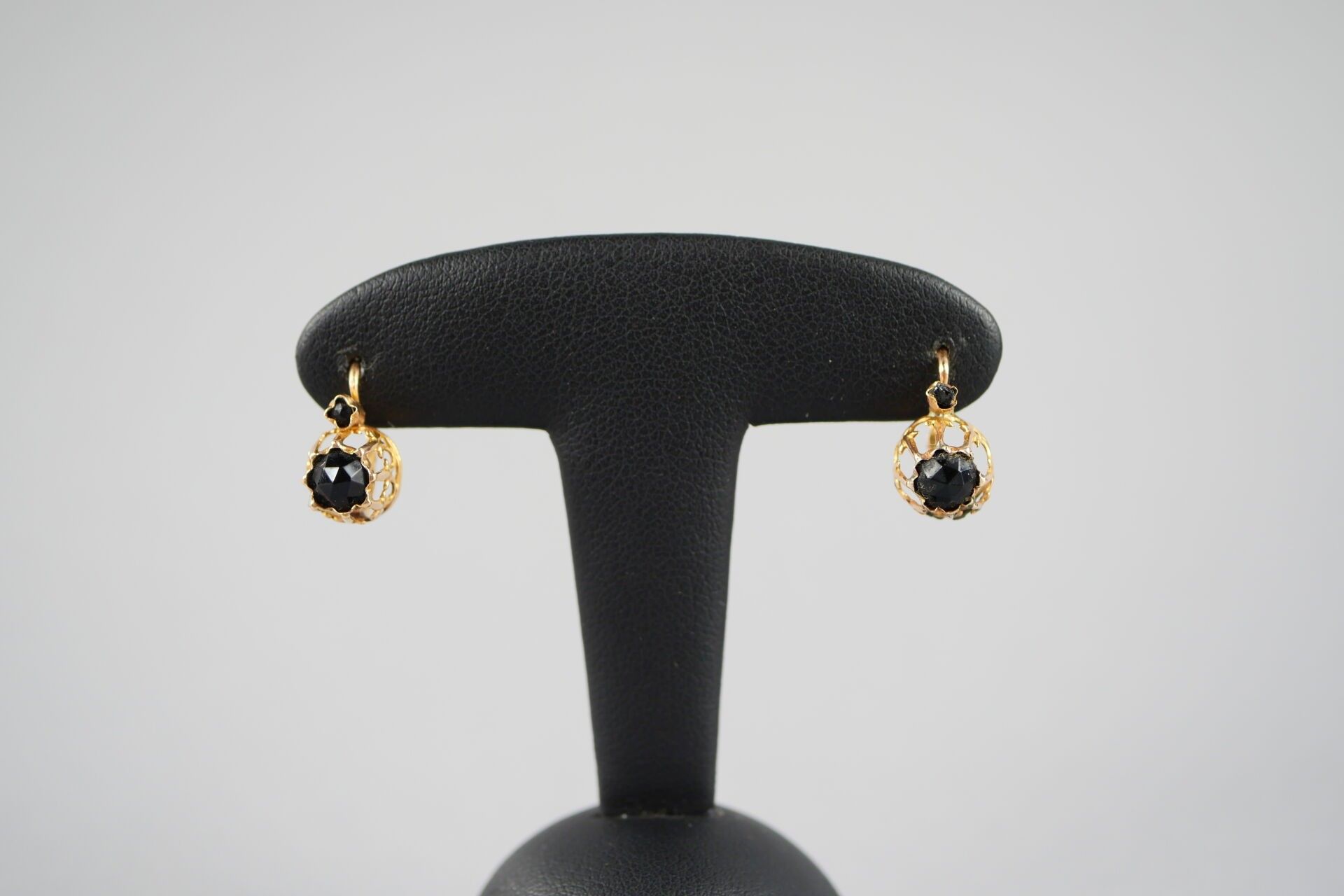 Pair of 18K-750 thousandths yellow gold dormeuses set with jet.