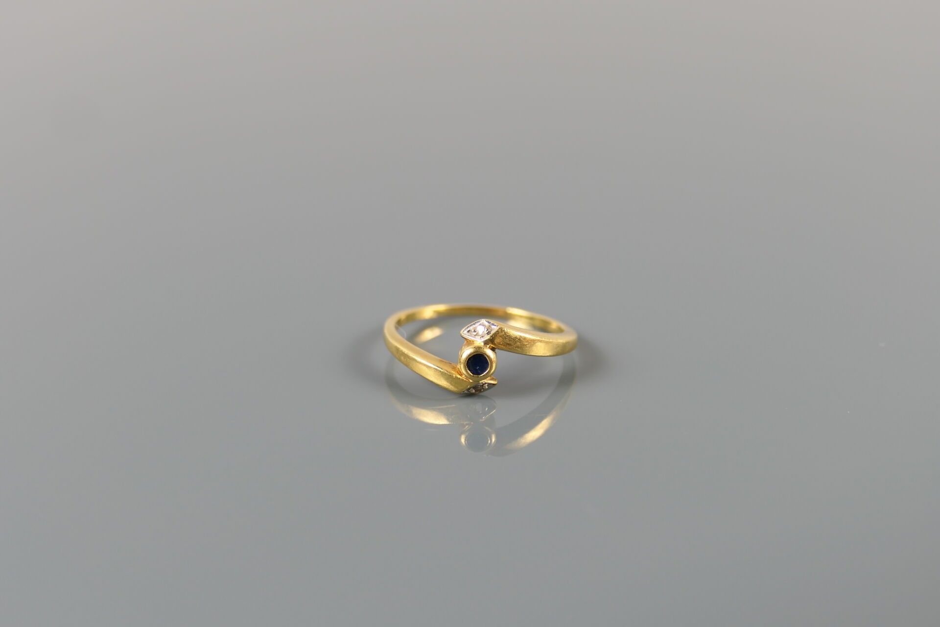 Ring in 750 thousandths yellow gold set with a small blue st…