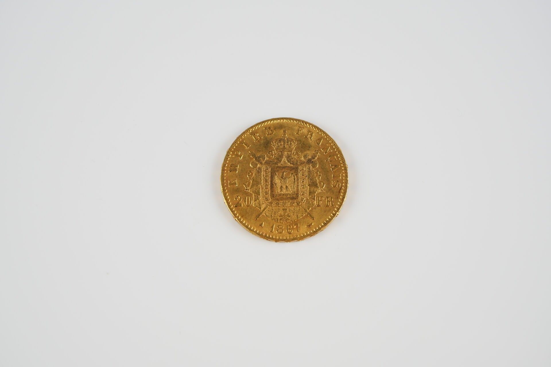 1 Gold coin. Bar. Napoleon III Emperor. 20 Francs. 1867.