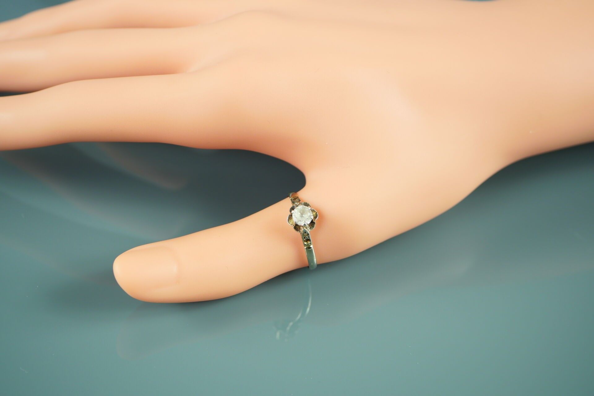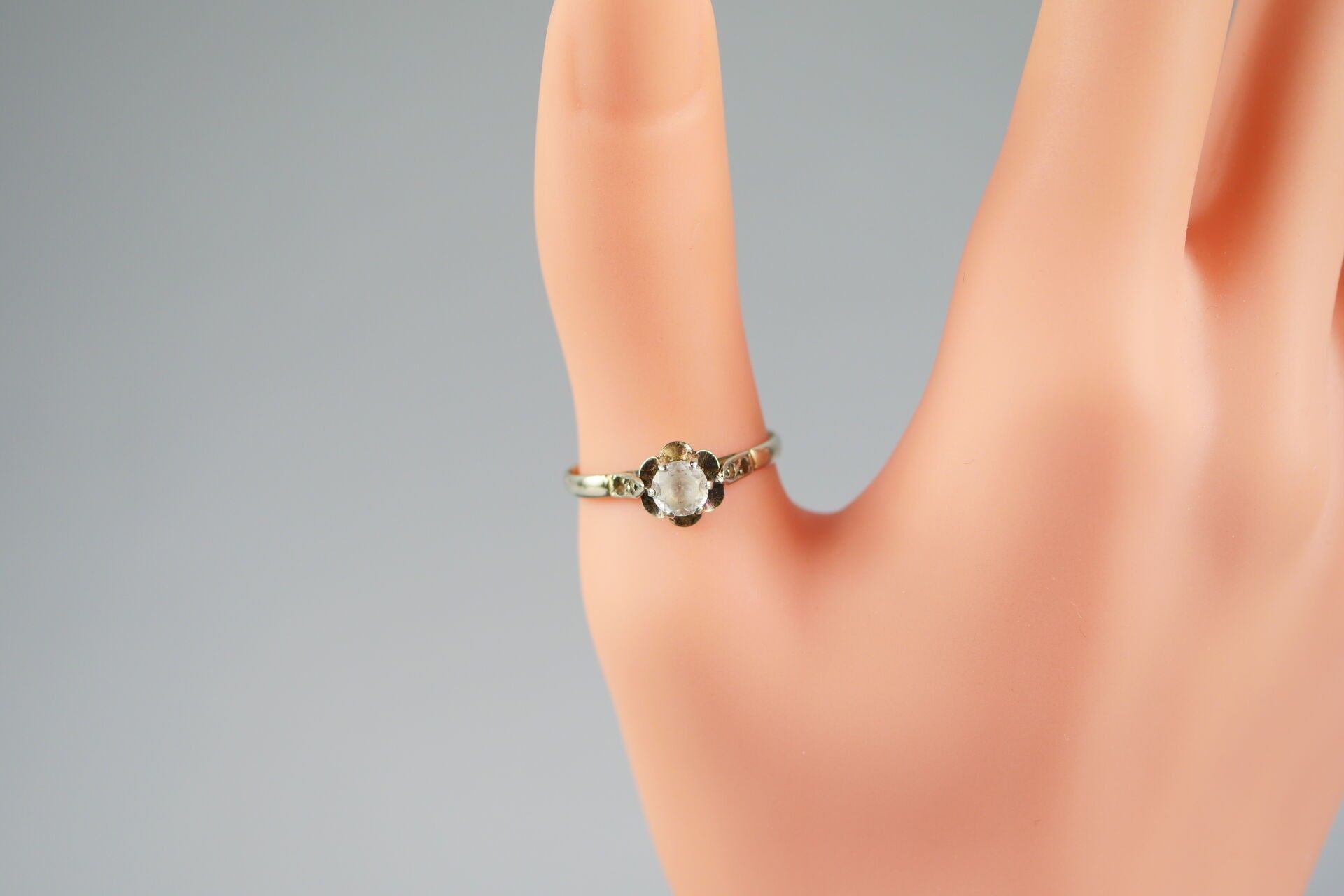 (Wear and scratches, including to the main stone. One stone missing. Small trace of soldering on the ring. Sold as is)