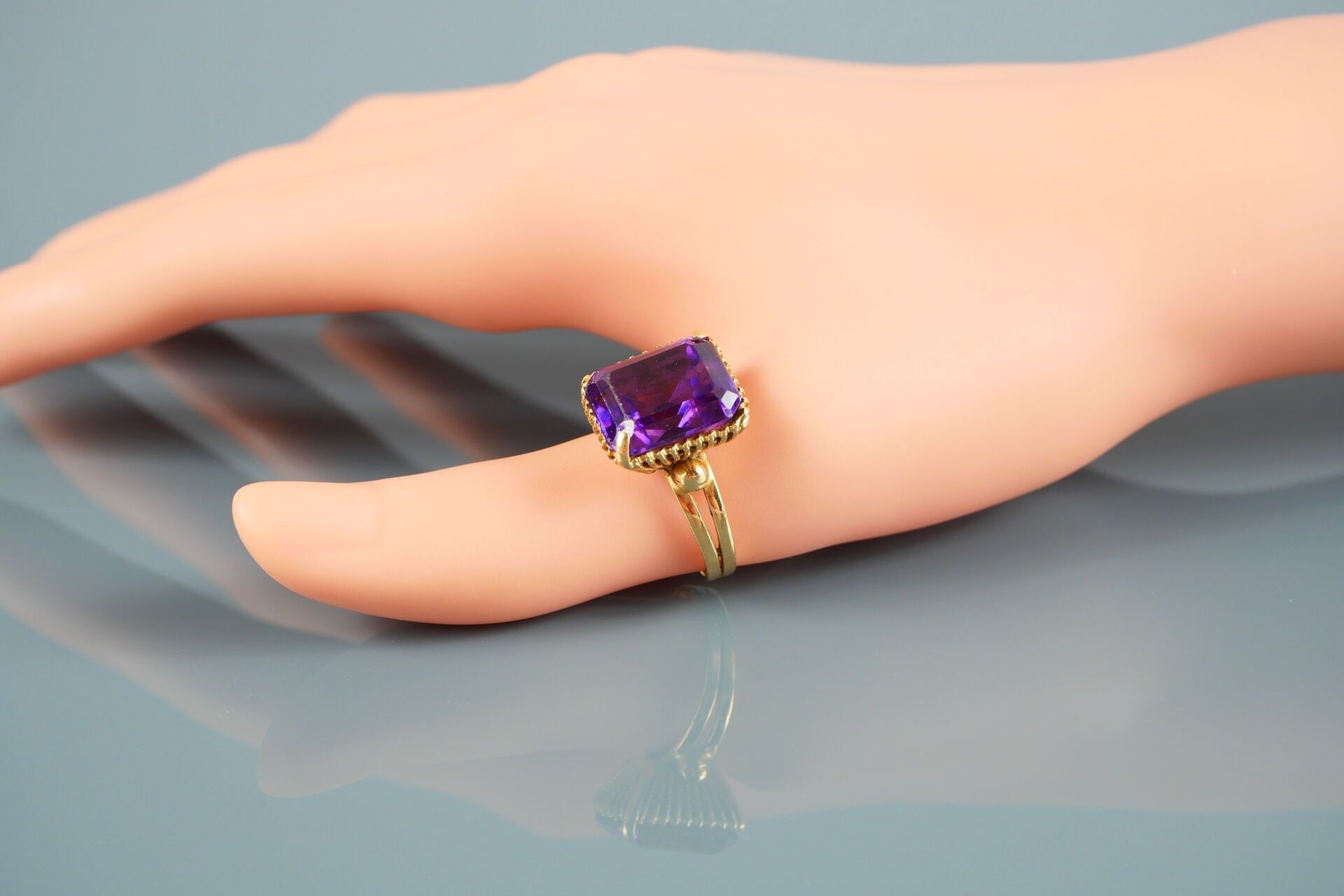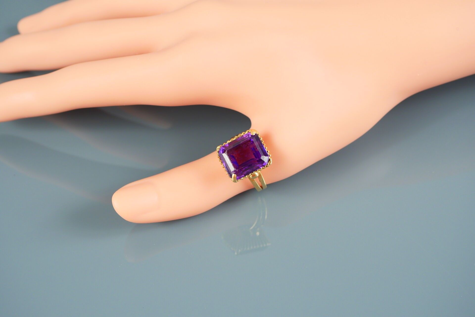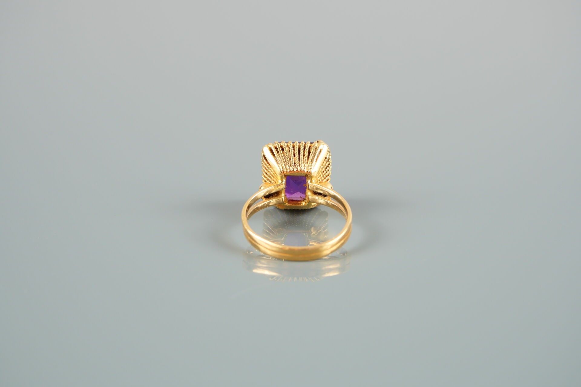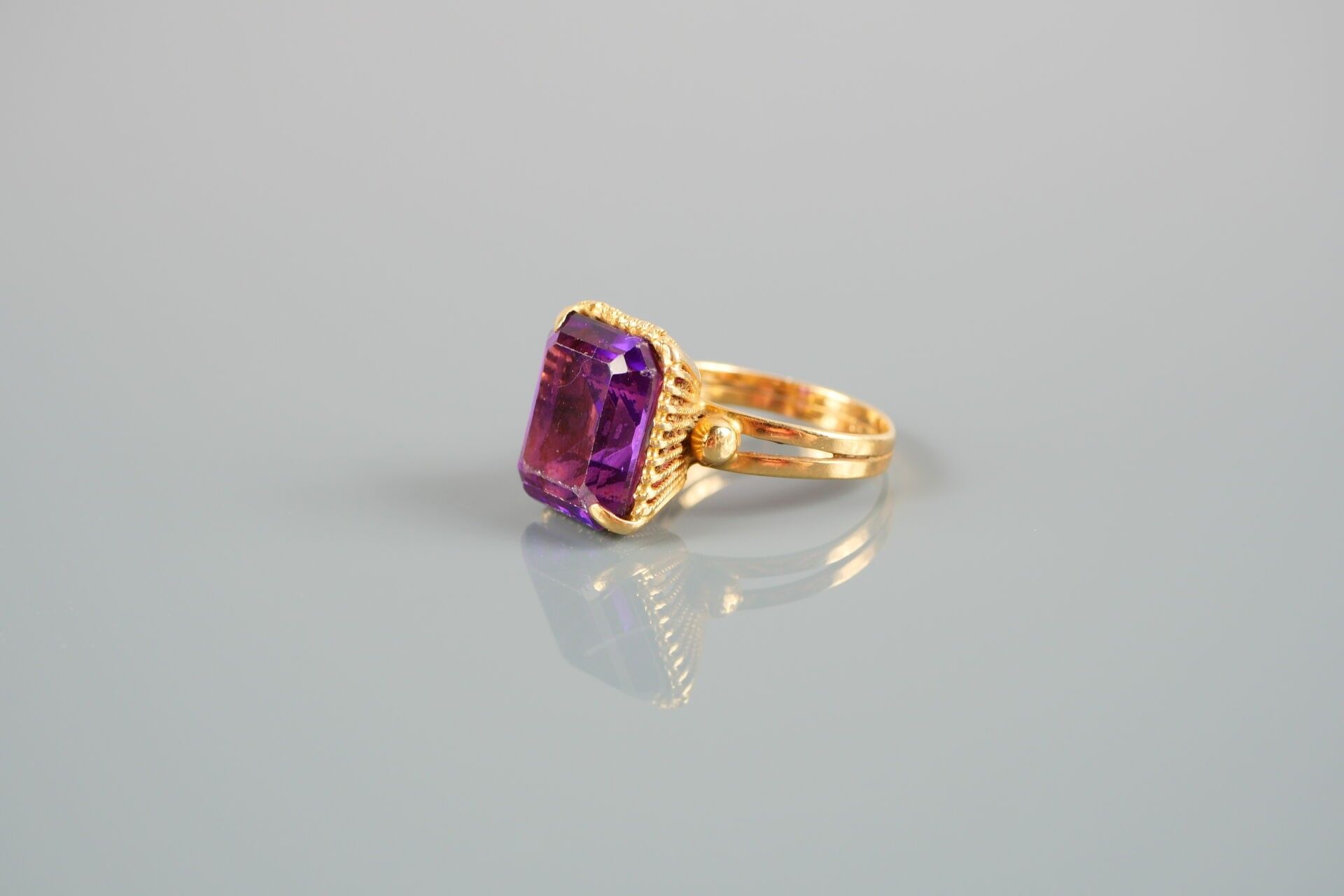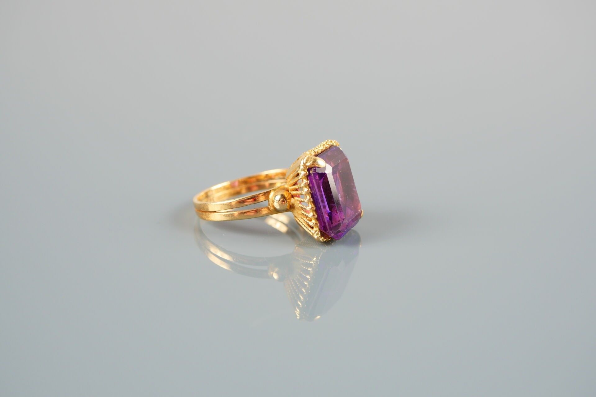 18K-750 thousandths yellow gold ring set with a violet stone…