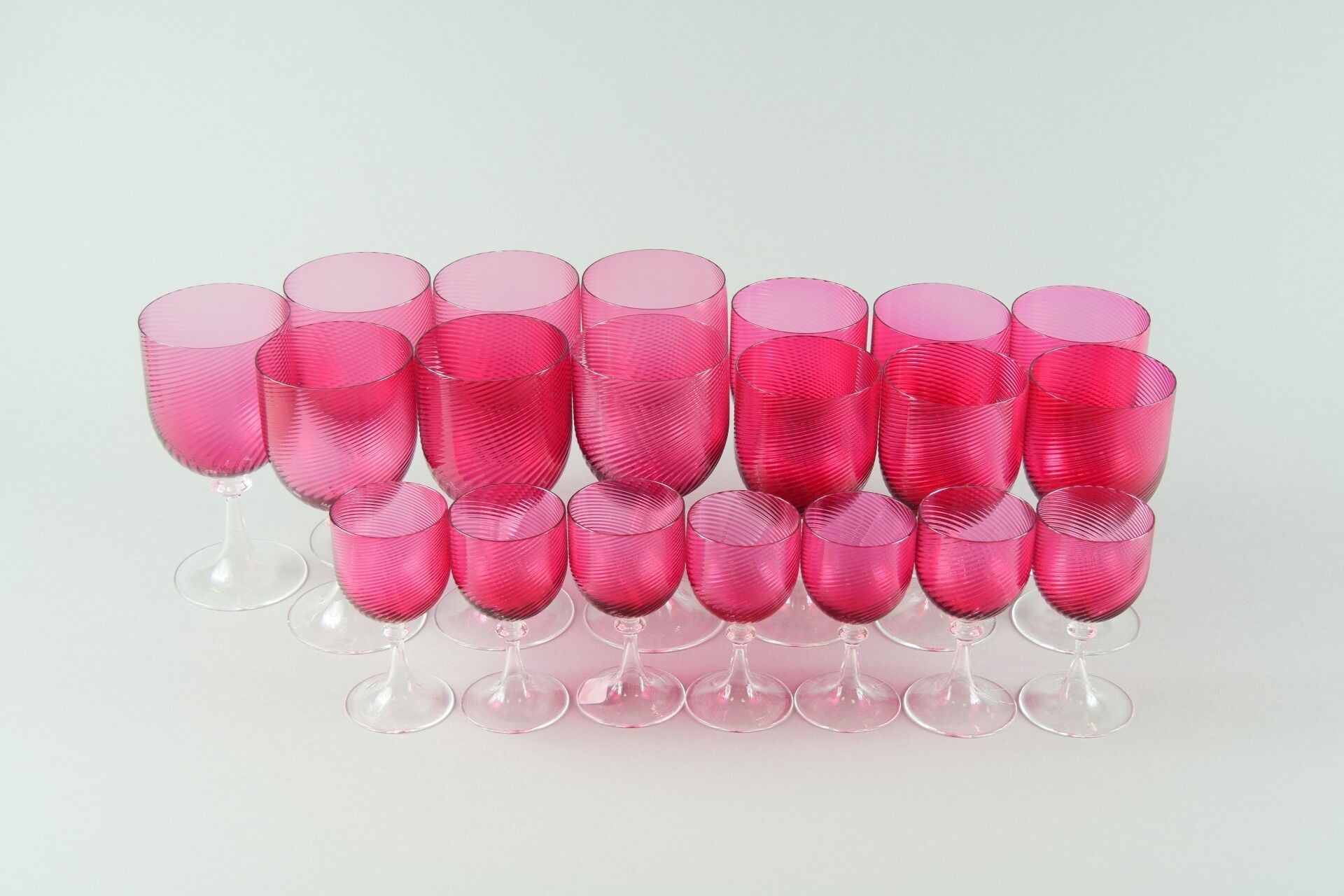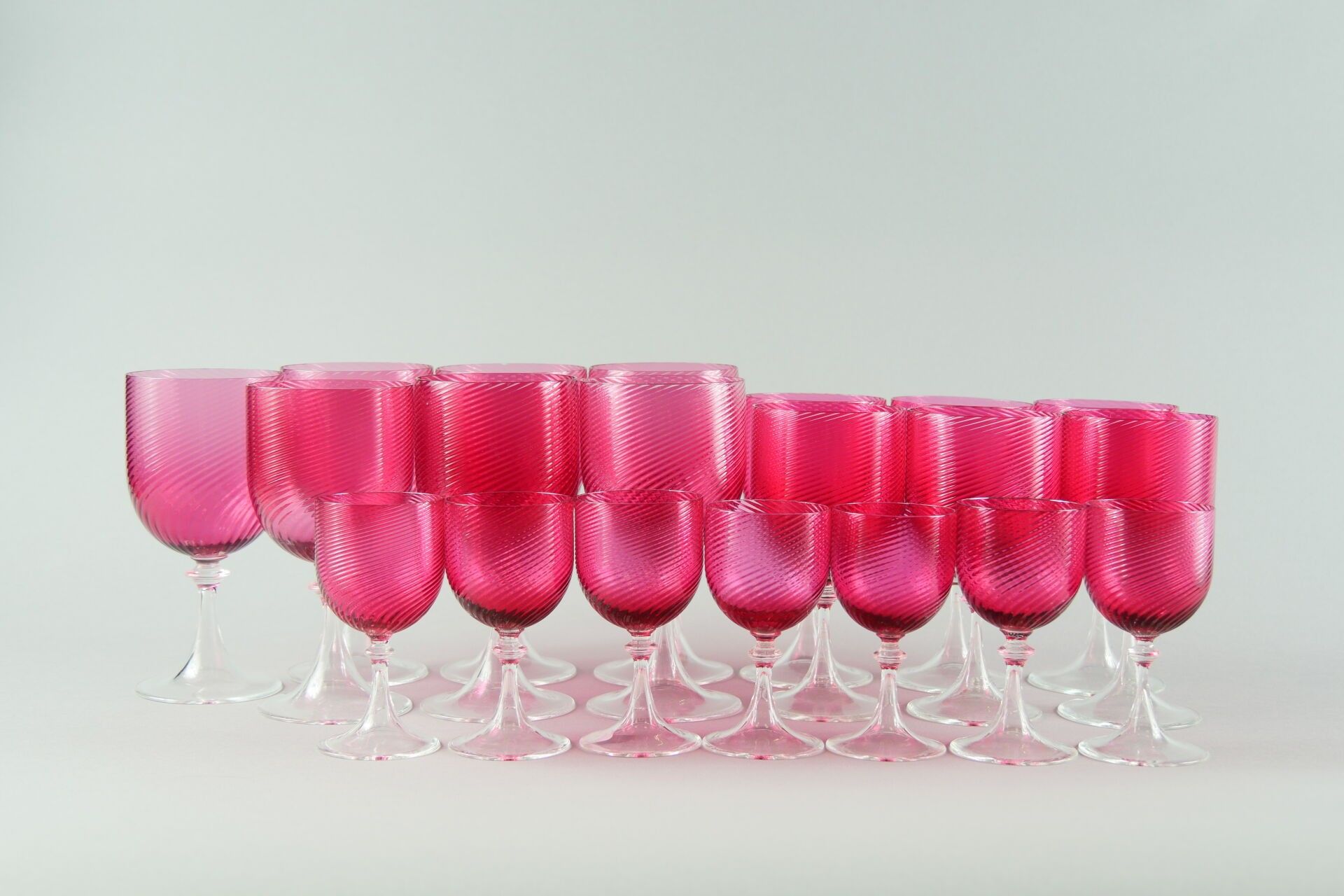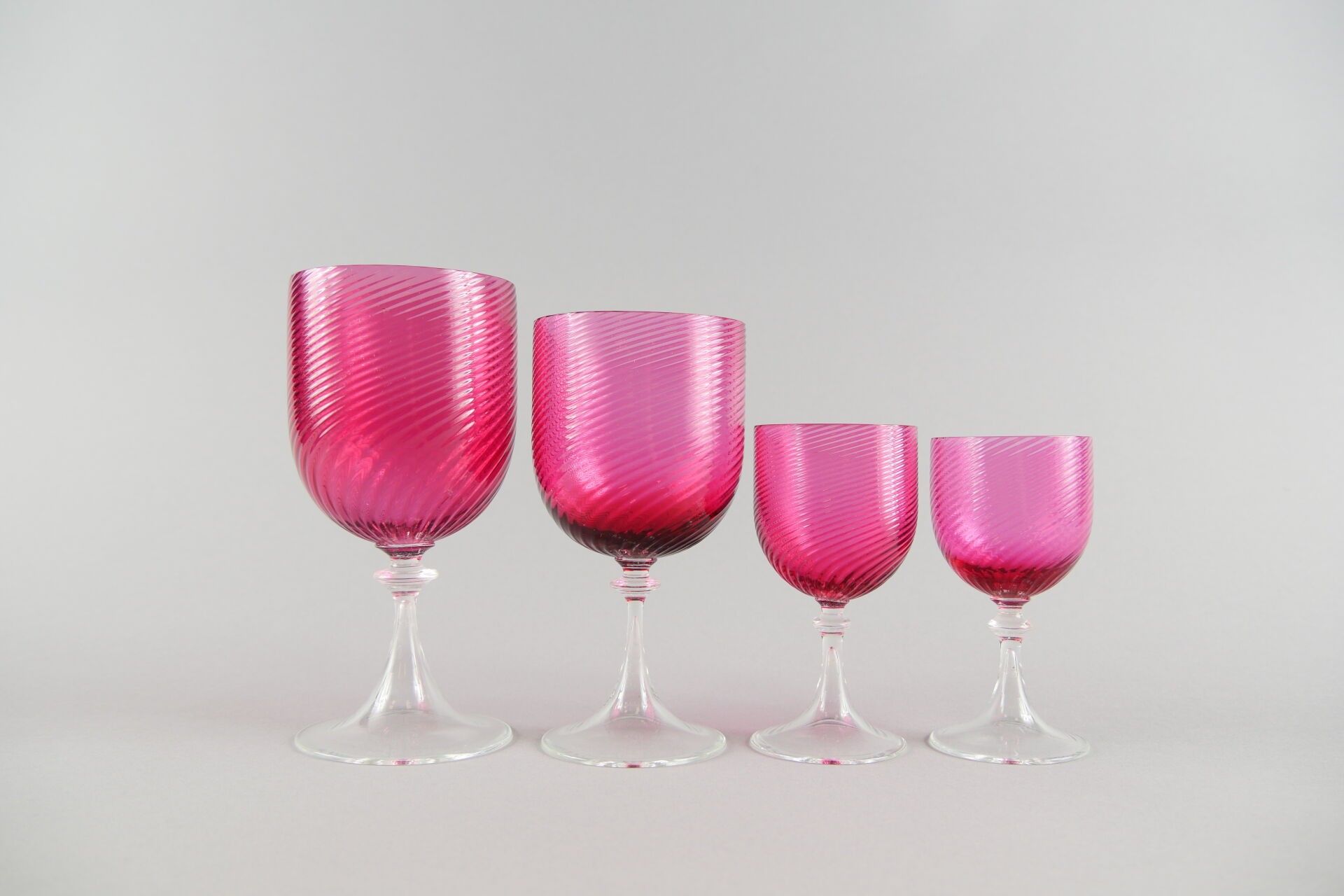 Part of a glass service. Red "Rubino" twisted chalices: