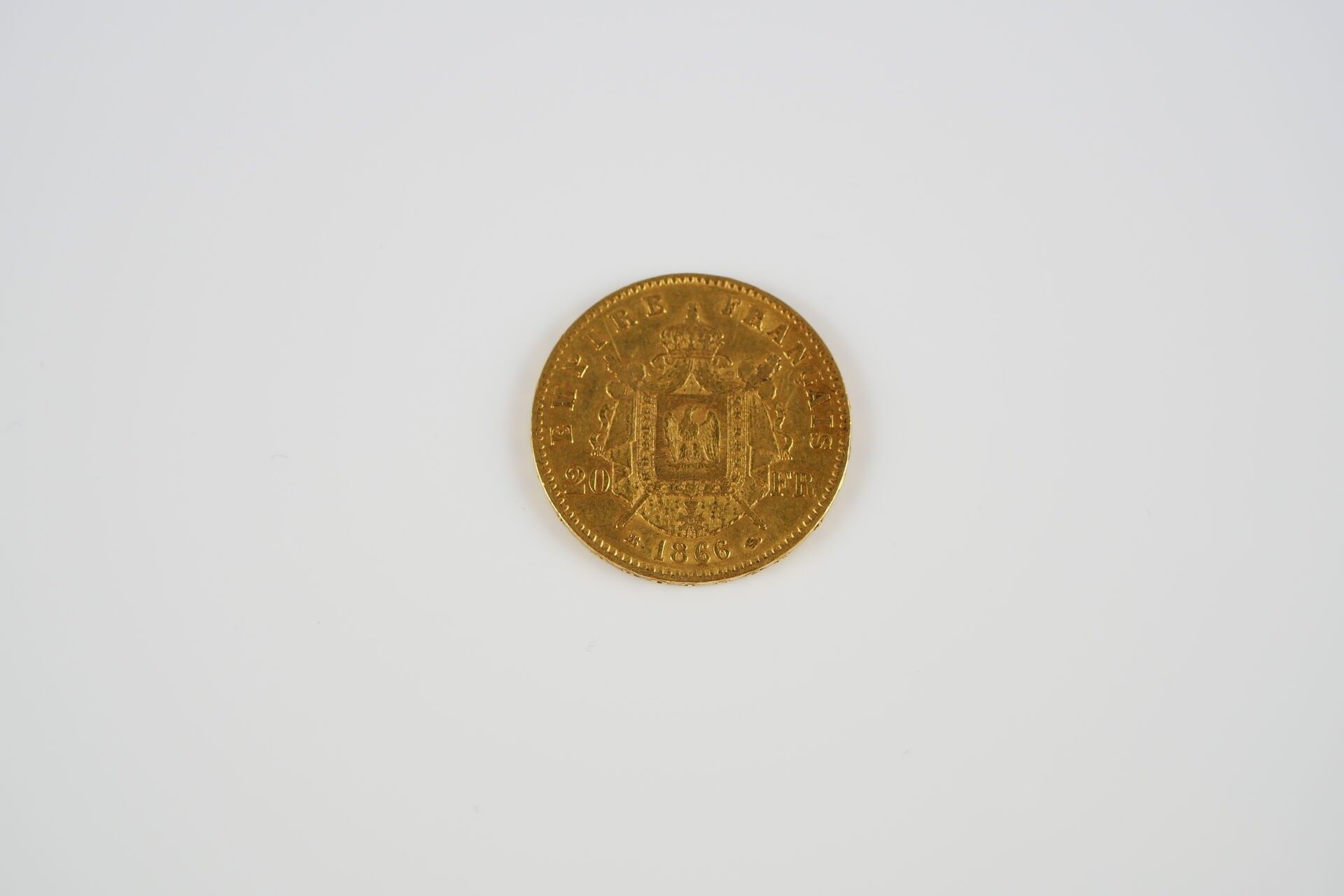 1 Gold coin. Bar. Napoleon III Emperor. 20 Francs. 1866.