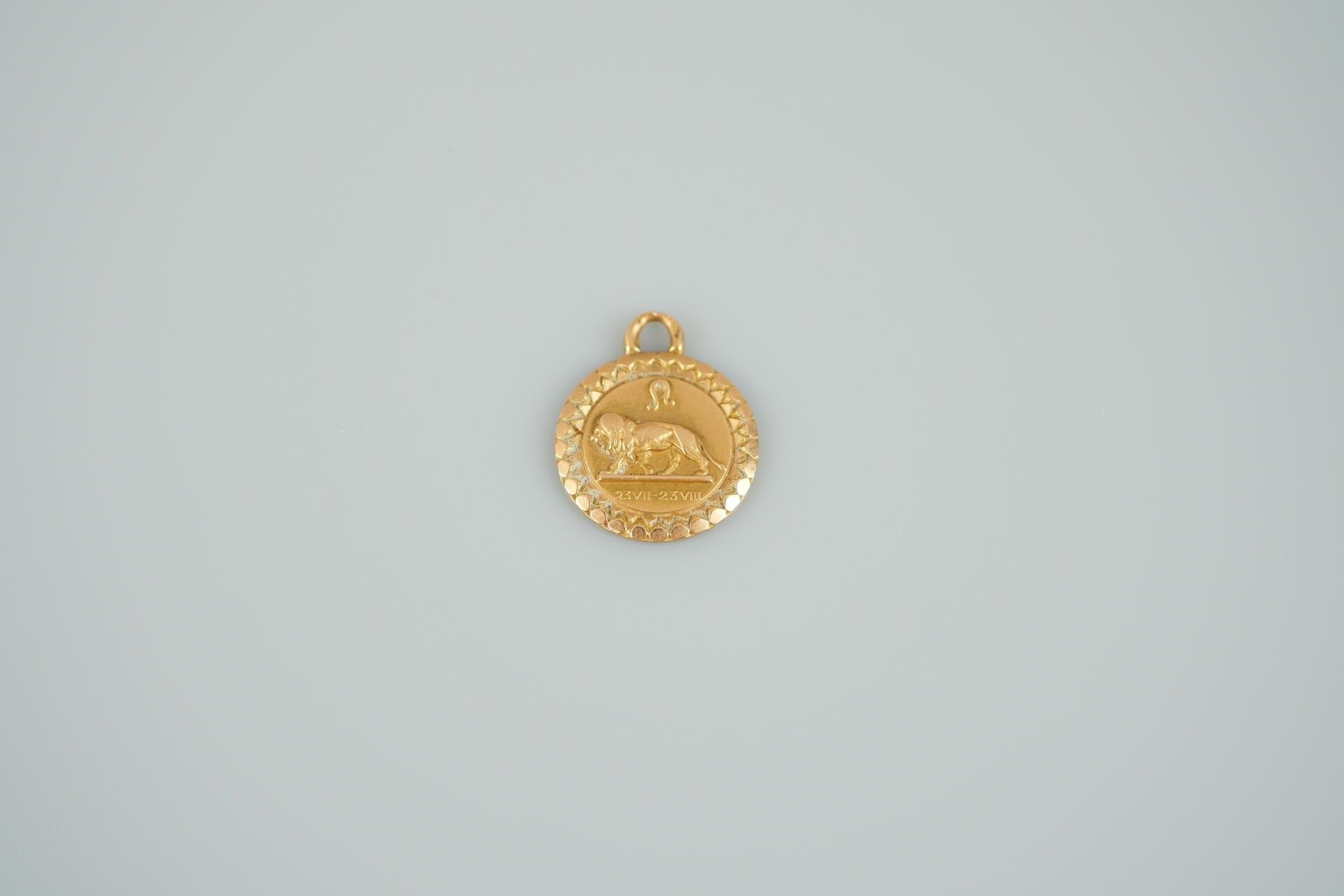 18K-750 thousandths yellow gold medal decorated with a lion.…