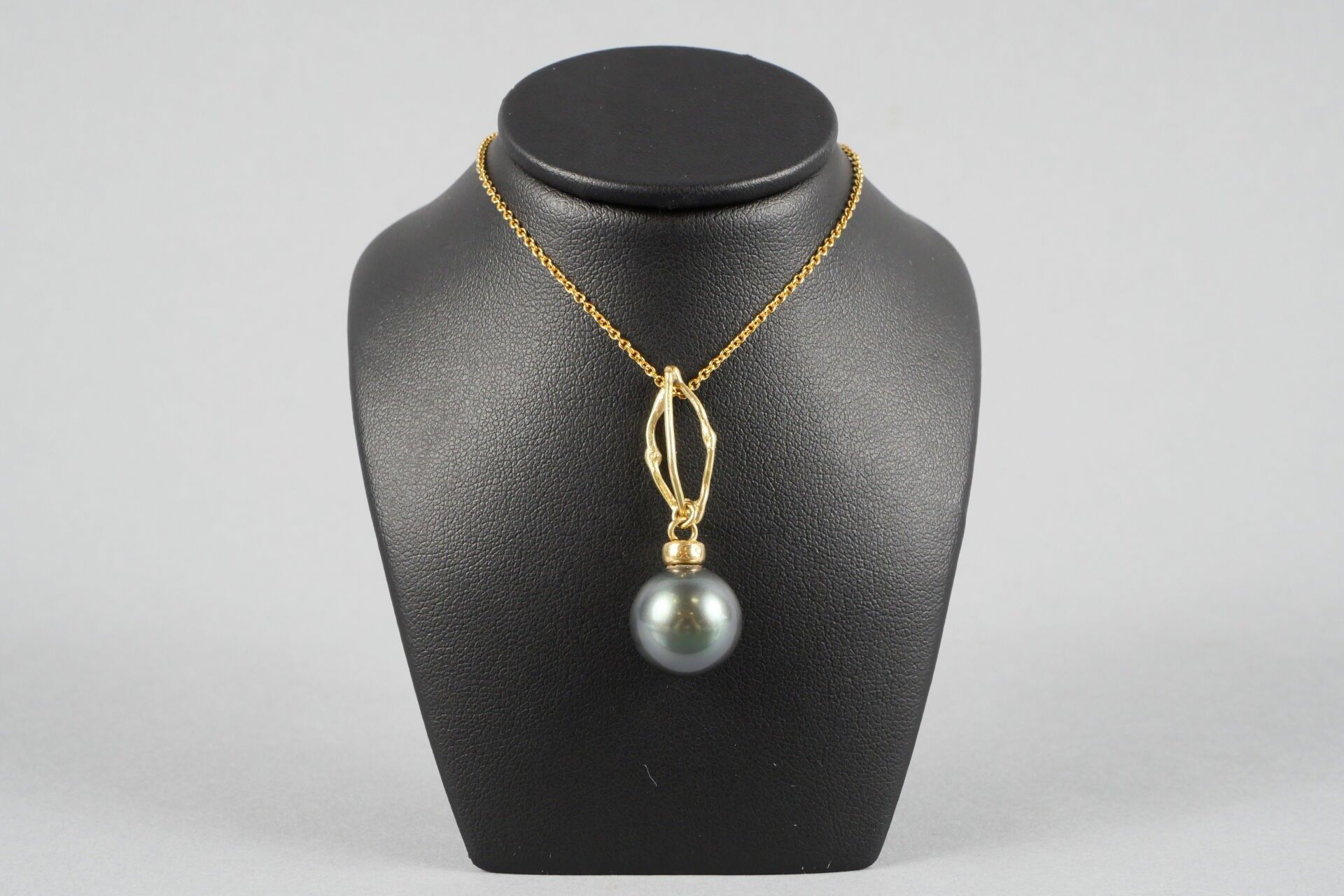 Three pendants and a buckle in 18K-750 thousandths yellow gold set with a pearl.