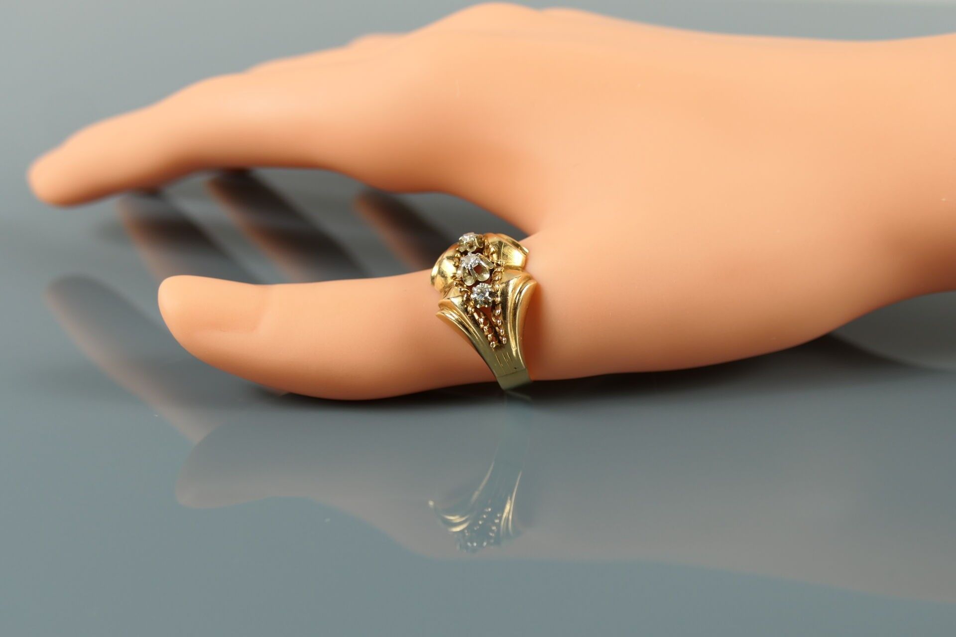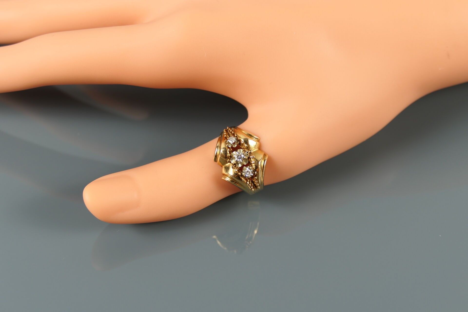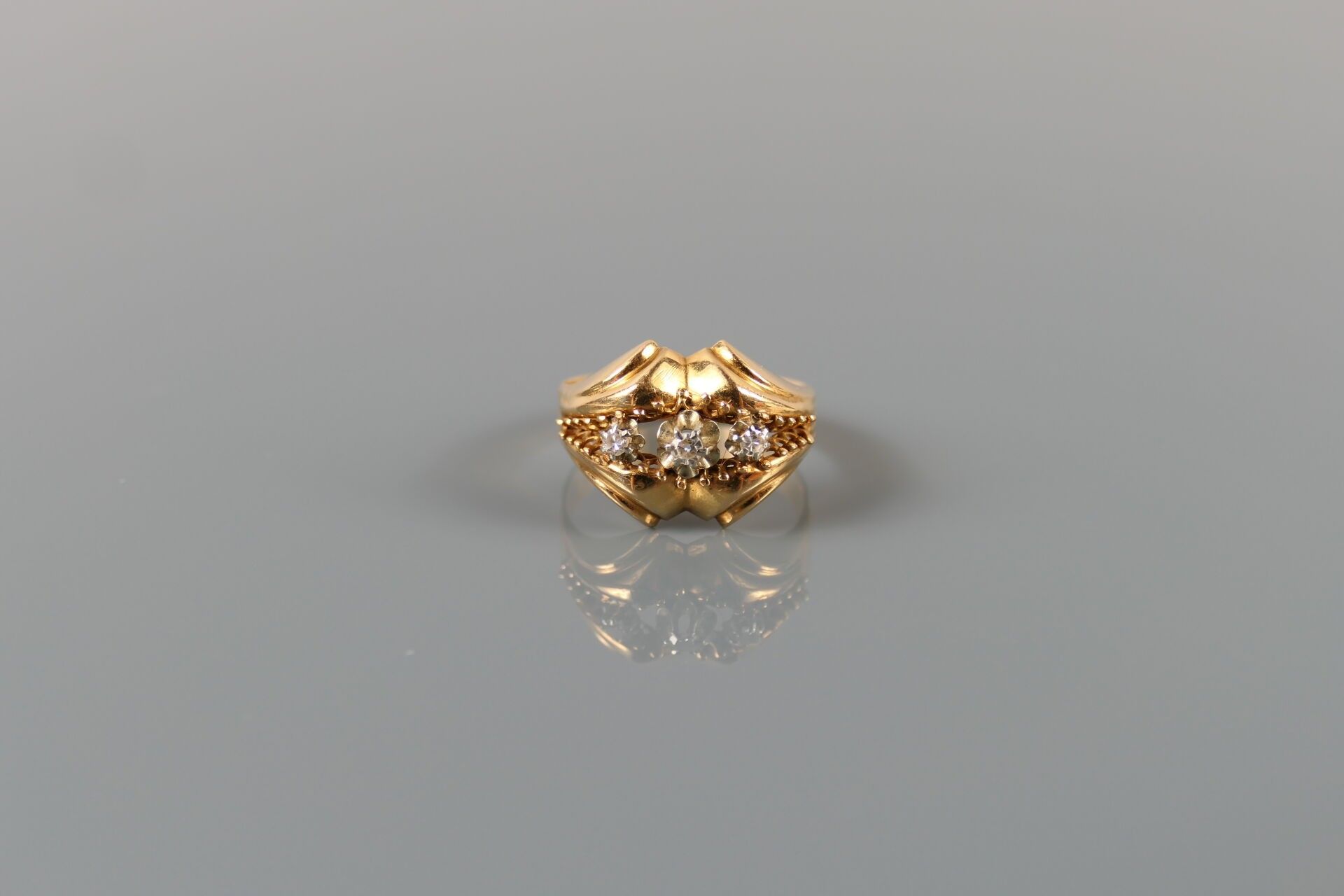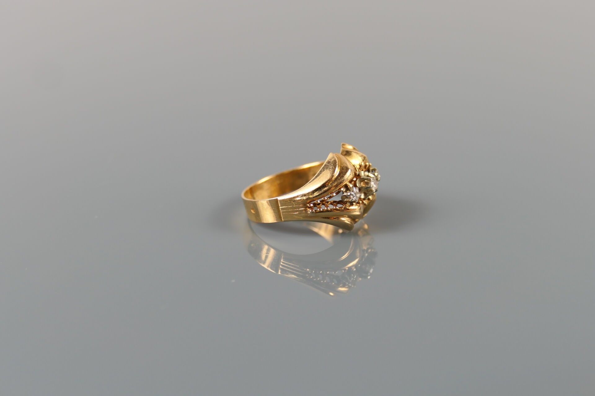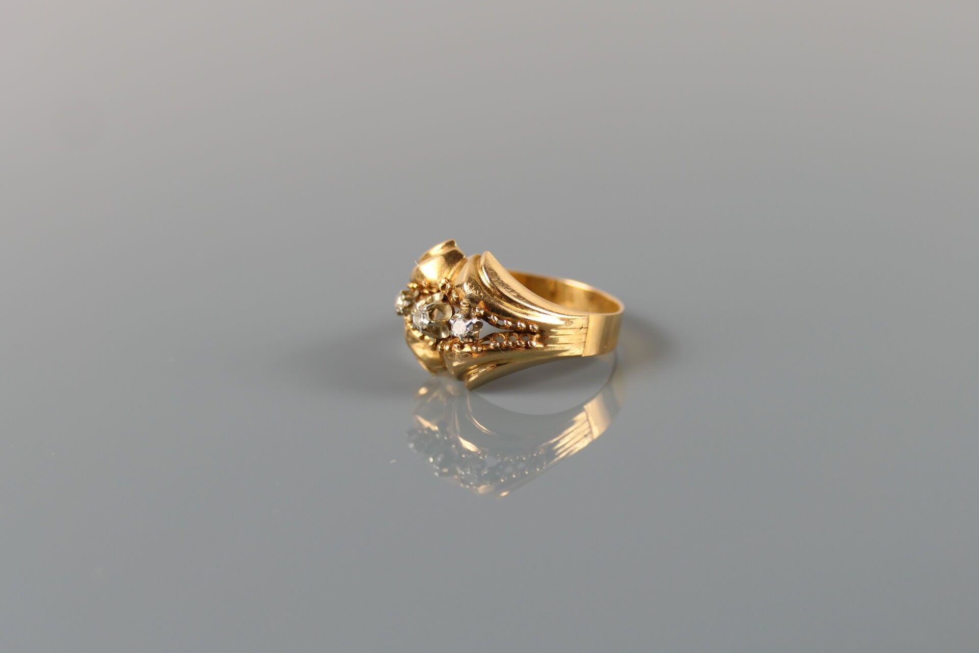 Ring in 750 thousandths yellow gold set with white stones.