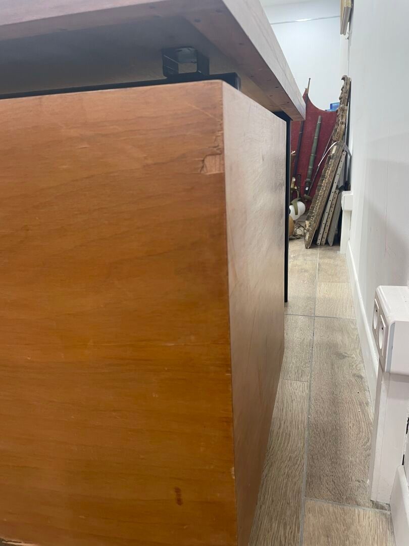 Rectangular veneered desk with side pedestal opening to 3 dr…