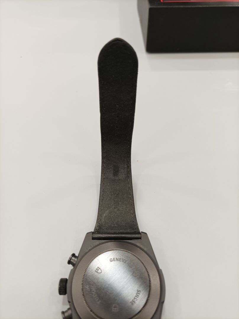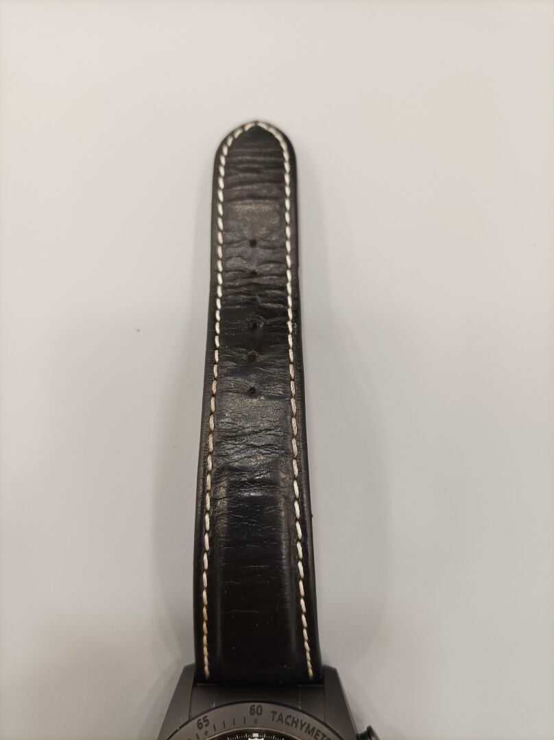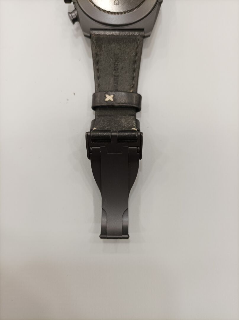 FASTRIDER BLACK SHIELD watch in black ceramic on black leather strap with white stitching and original folding clasp