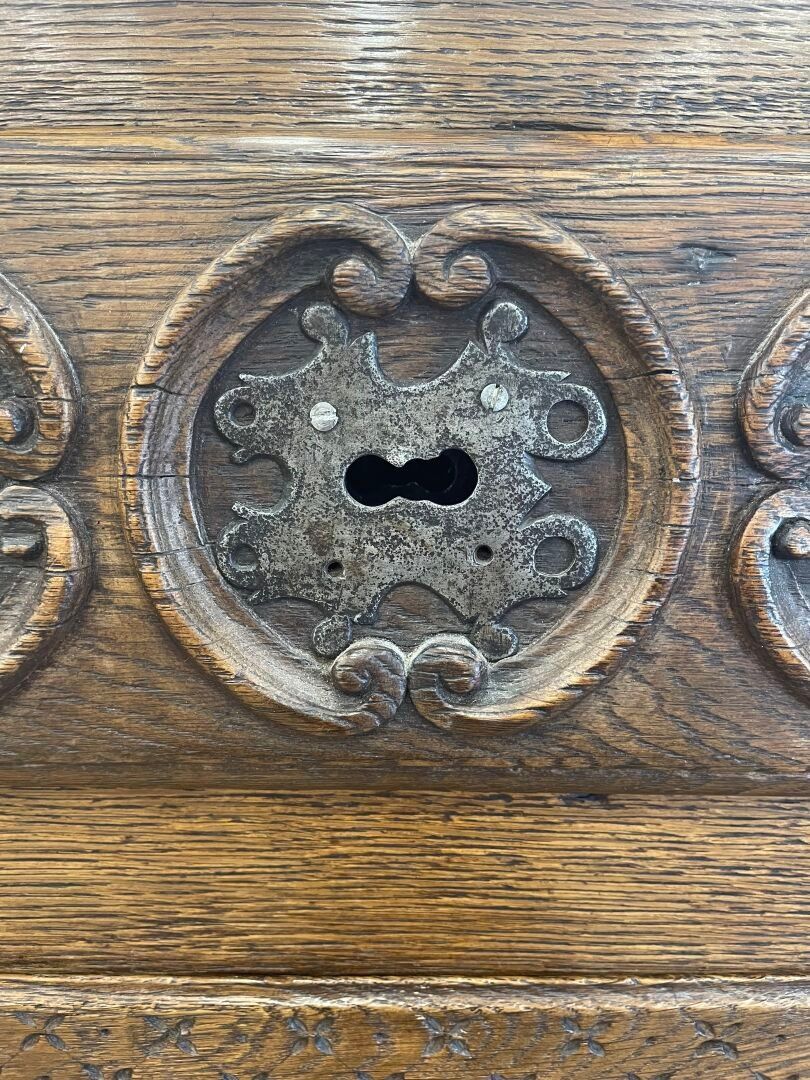 Moulded and carved oak cabinet opening to 3 drawers and 3 do…