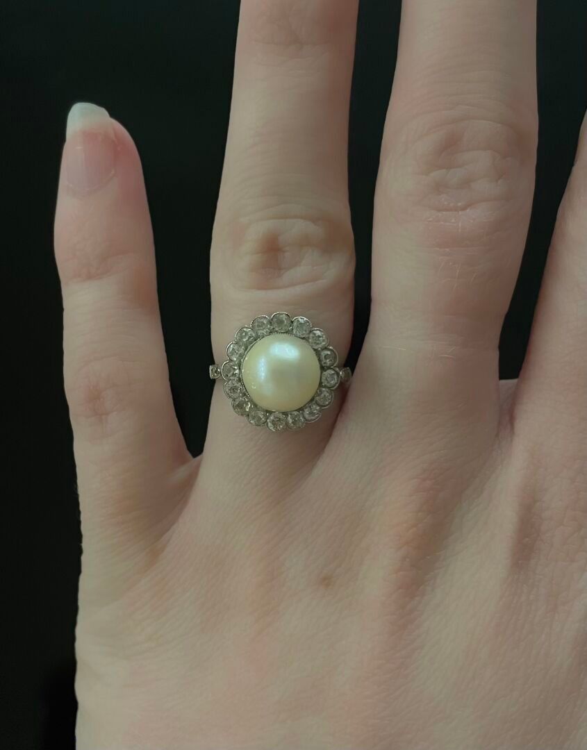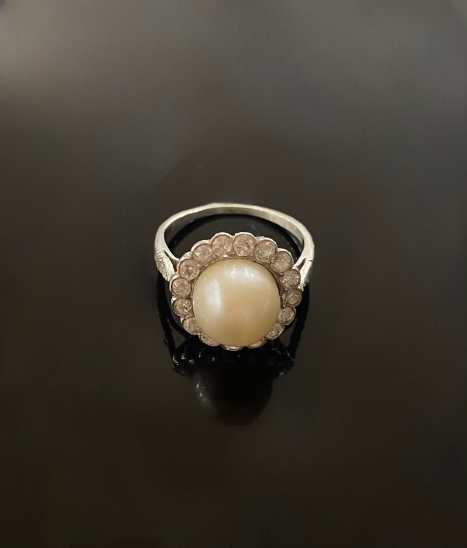 RING in platinum (850) centred on a pearl and surrounded by …