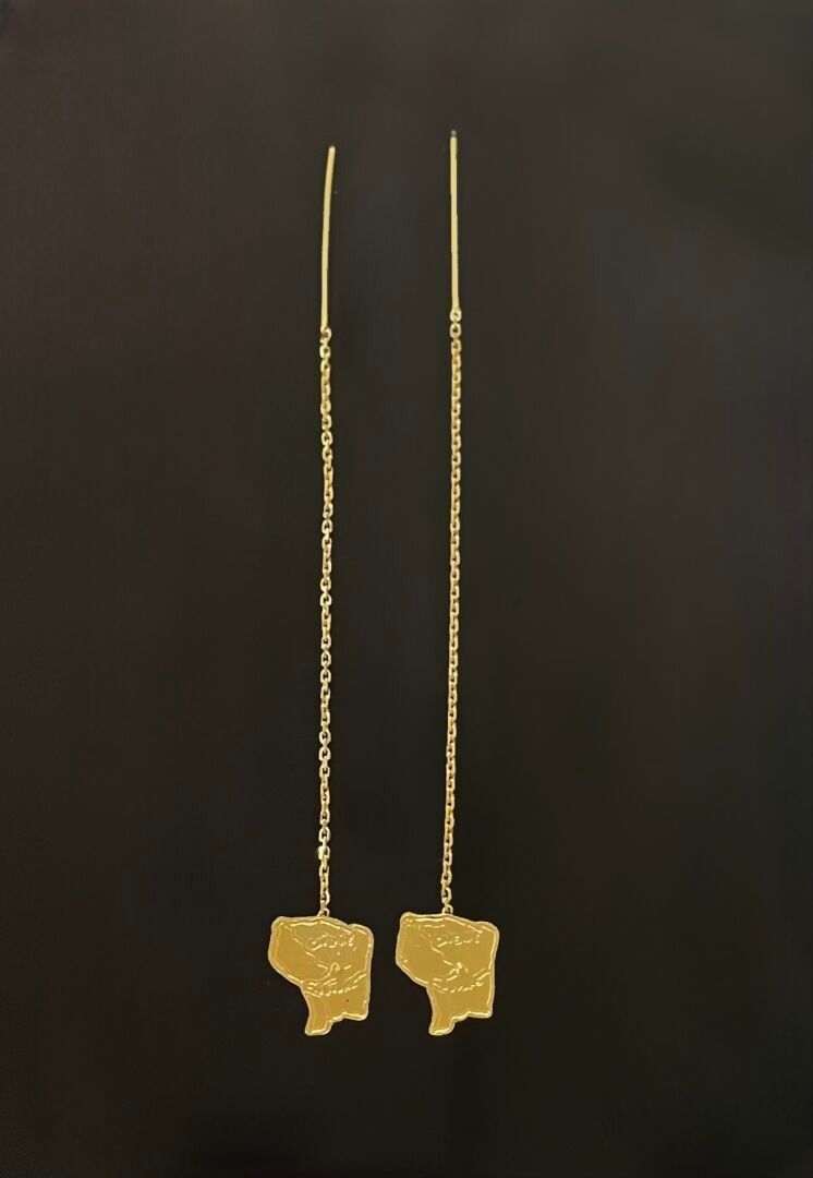 Pair of yellow gold EAR PENDANTS (375) representing French Guiana