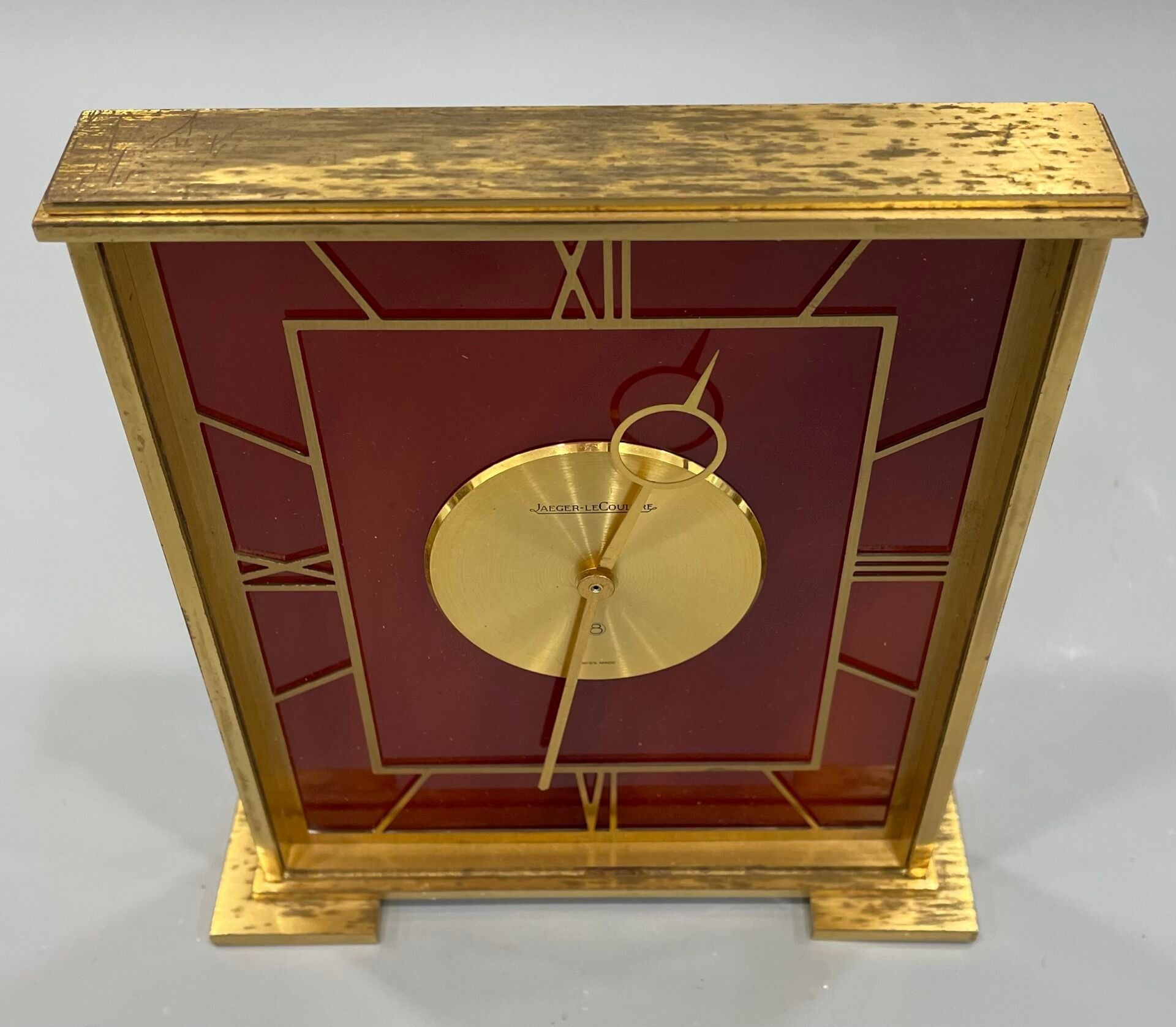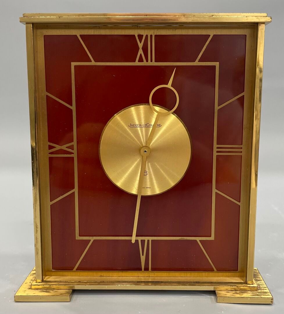 JAEGER LECOULTRE Rectangular gilt metal table clock with Rom…