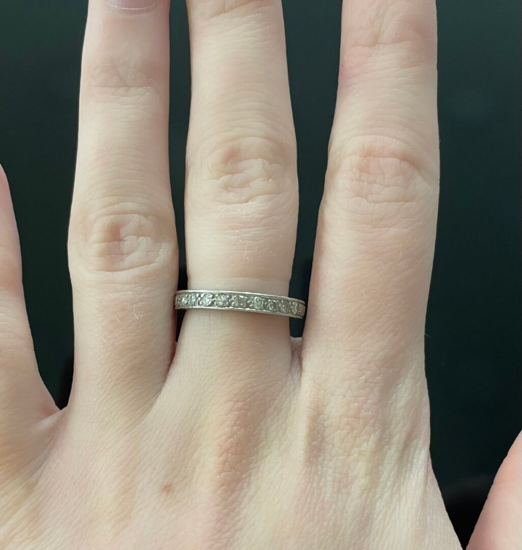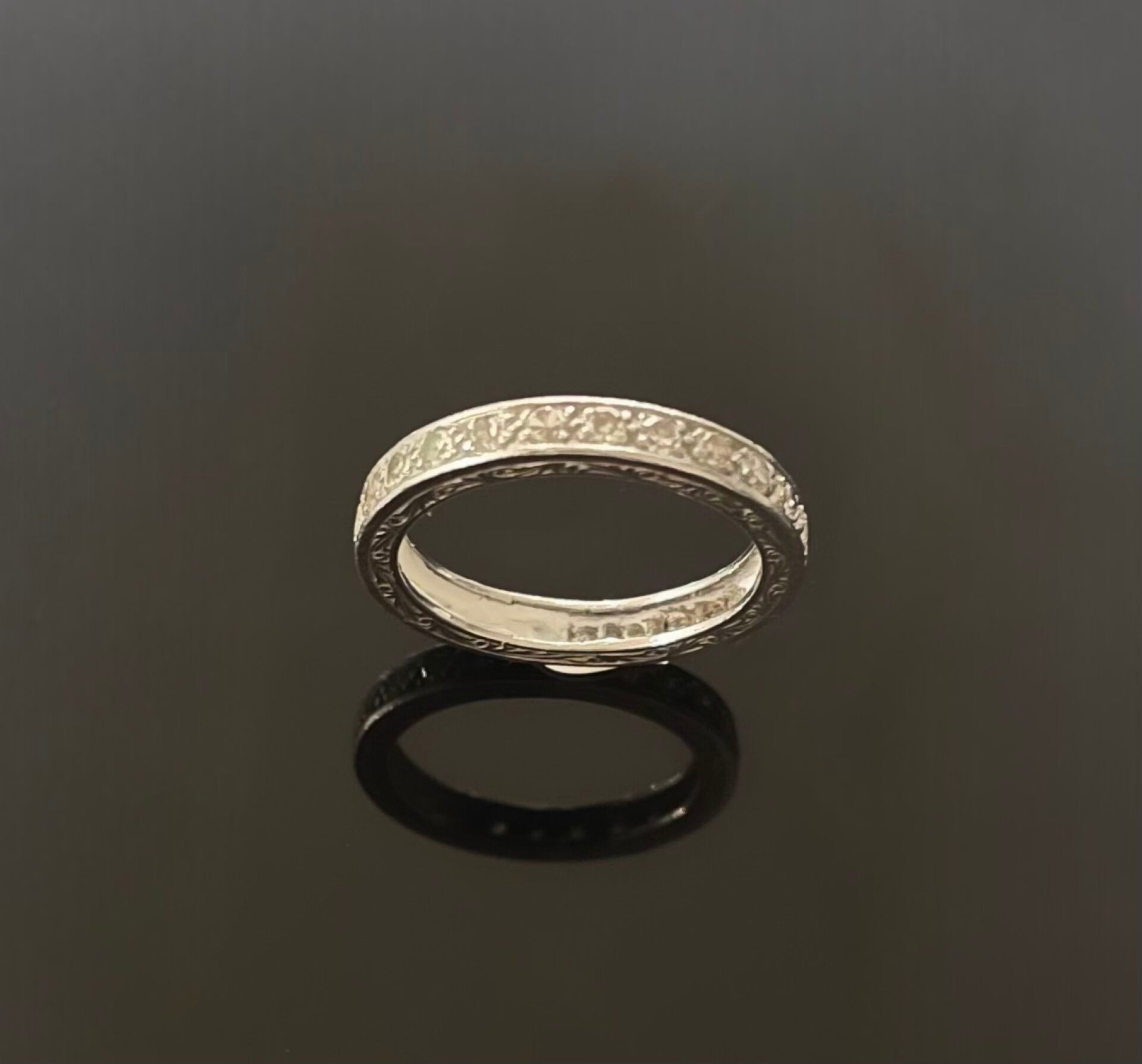 American ALLIANCE in platinum (850) set with small 8/8-cut diamonds and fully chased on the sides