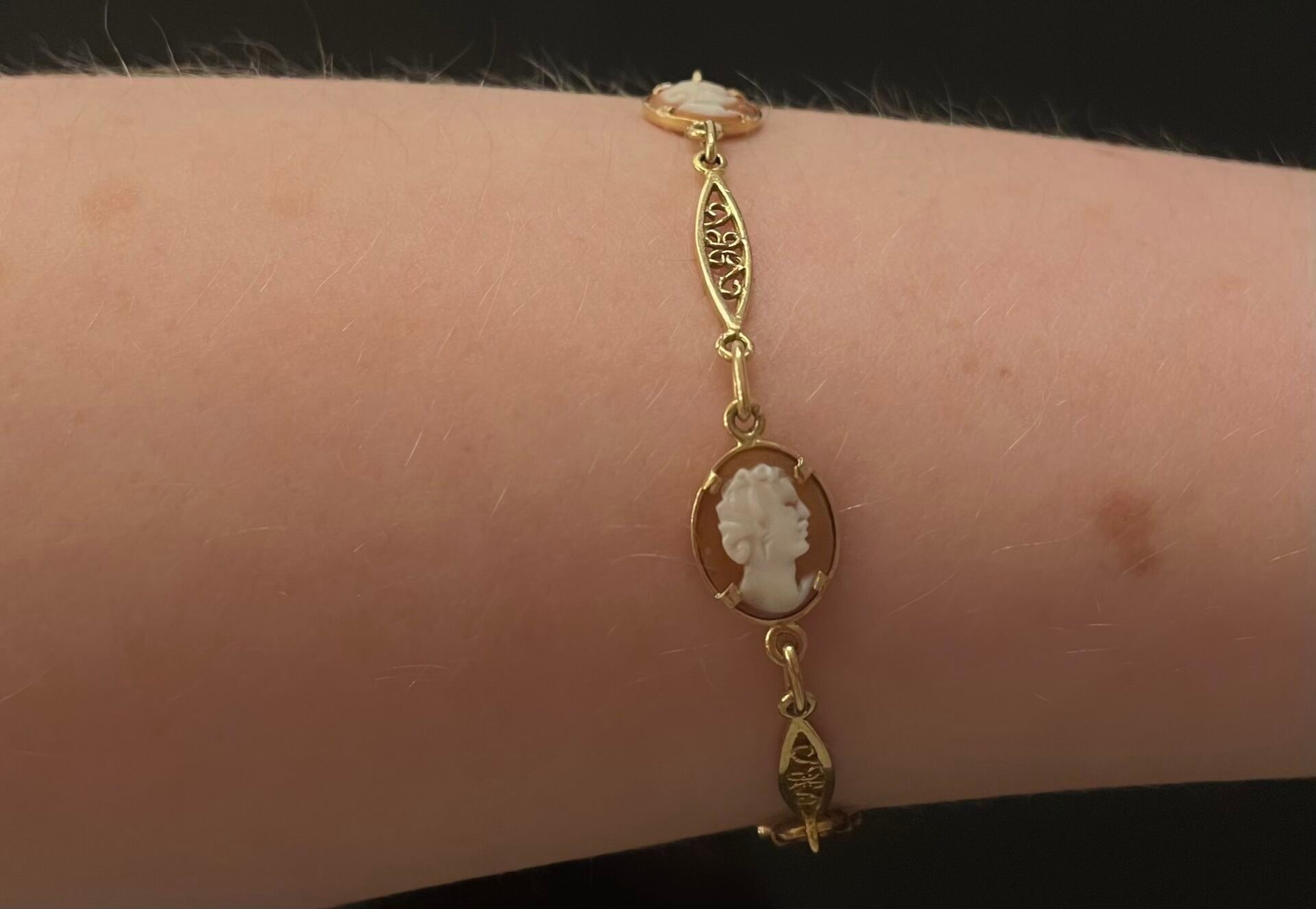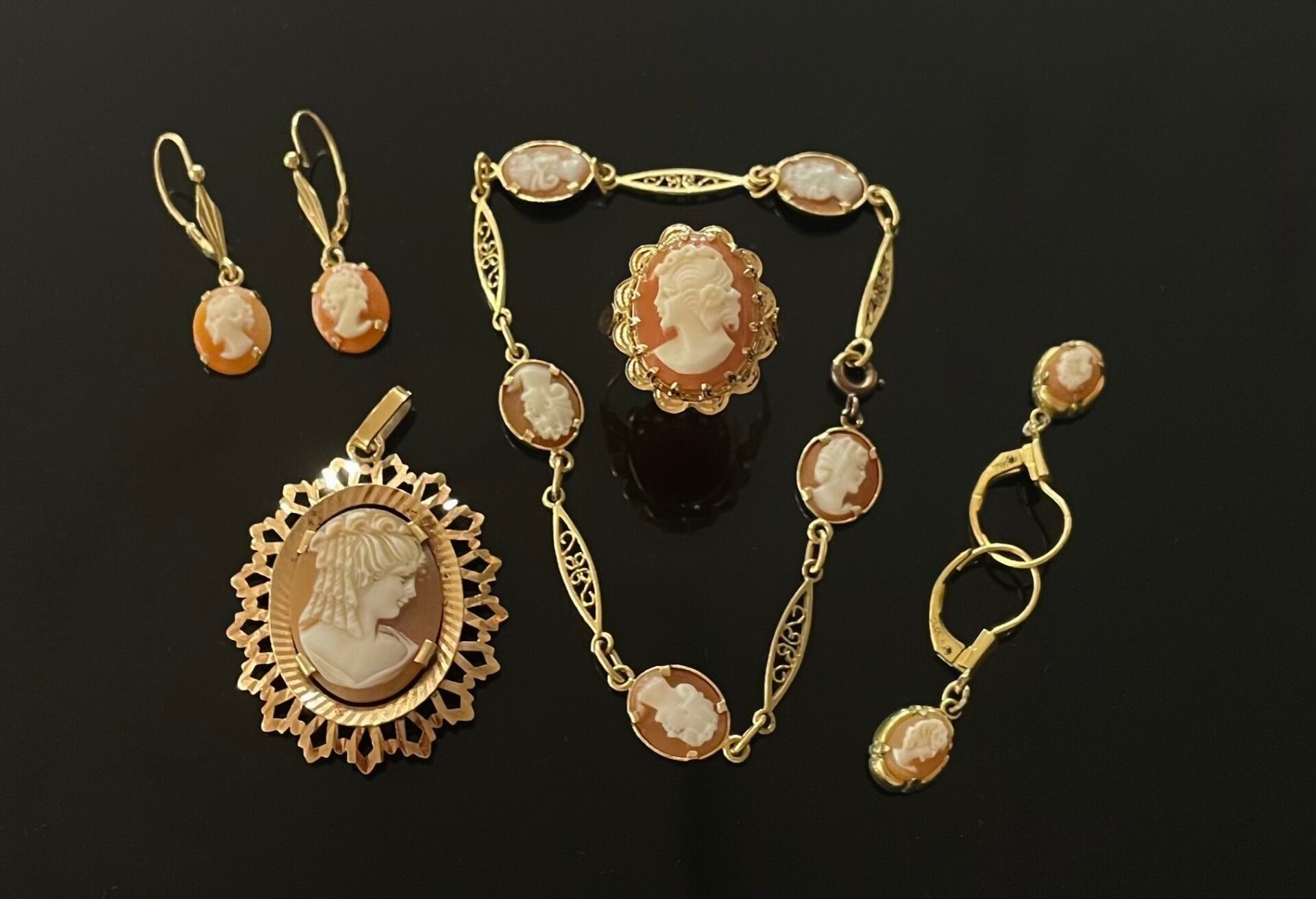 JEWELRY in yellow gold (750) and cameo with a woman's profile comprising: