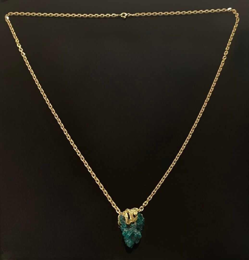 Premium Yellow gold (750) forçat chain necklace set with a rough gre…