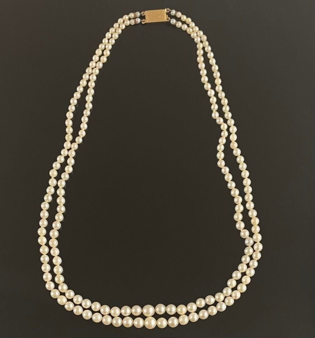 NECKLACE with two rows of pearls, rectangular ratchet clasp …