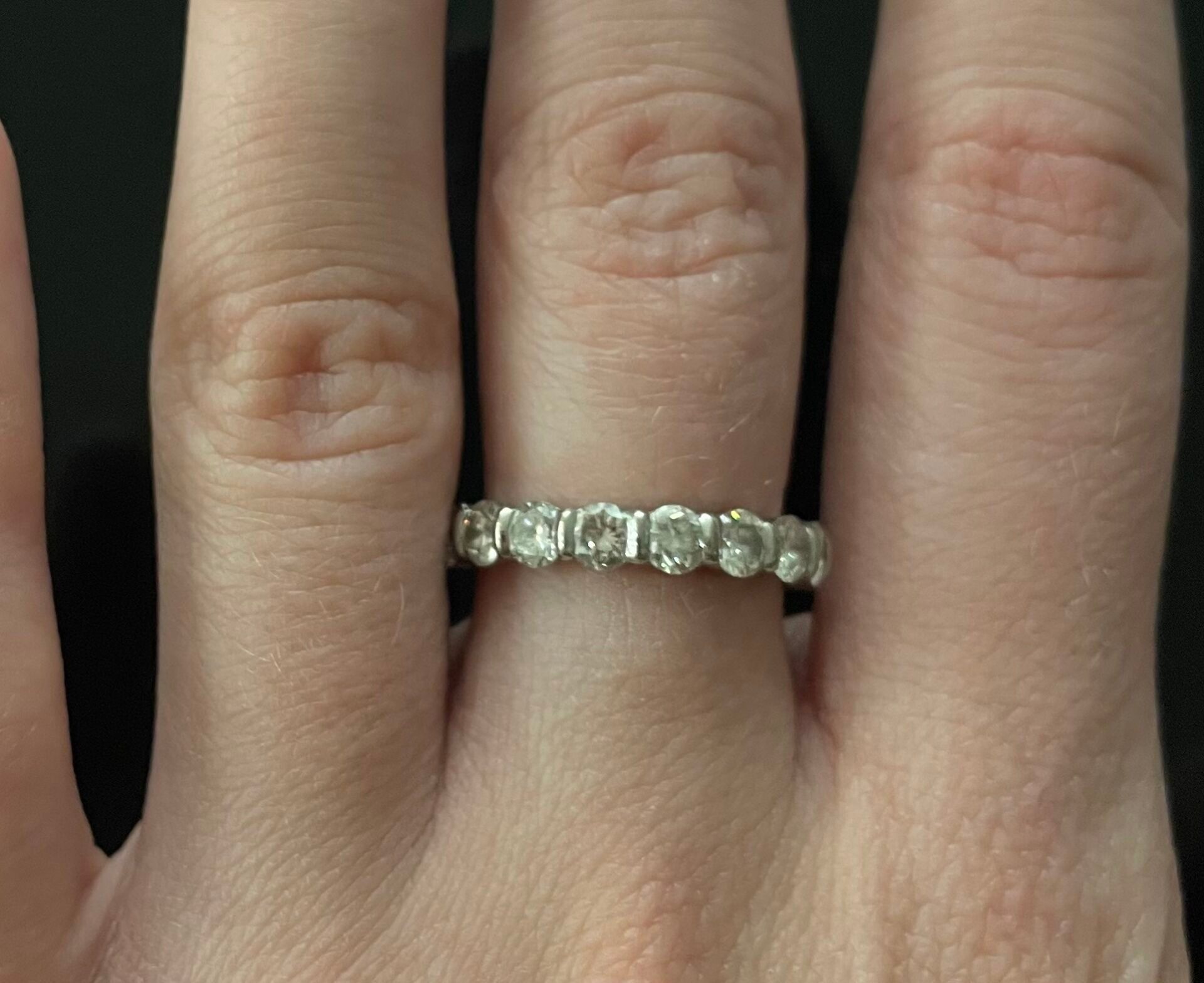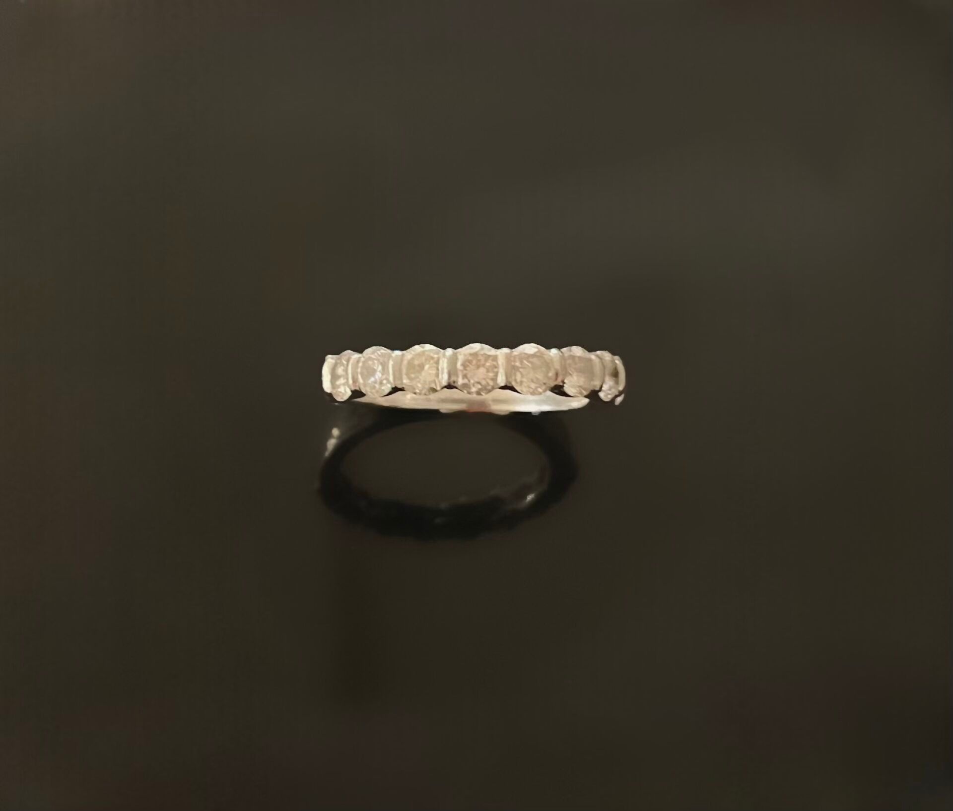 Half wedding ring in white gold (750) set with 8 diamonds weighing approximately 0.10 ct