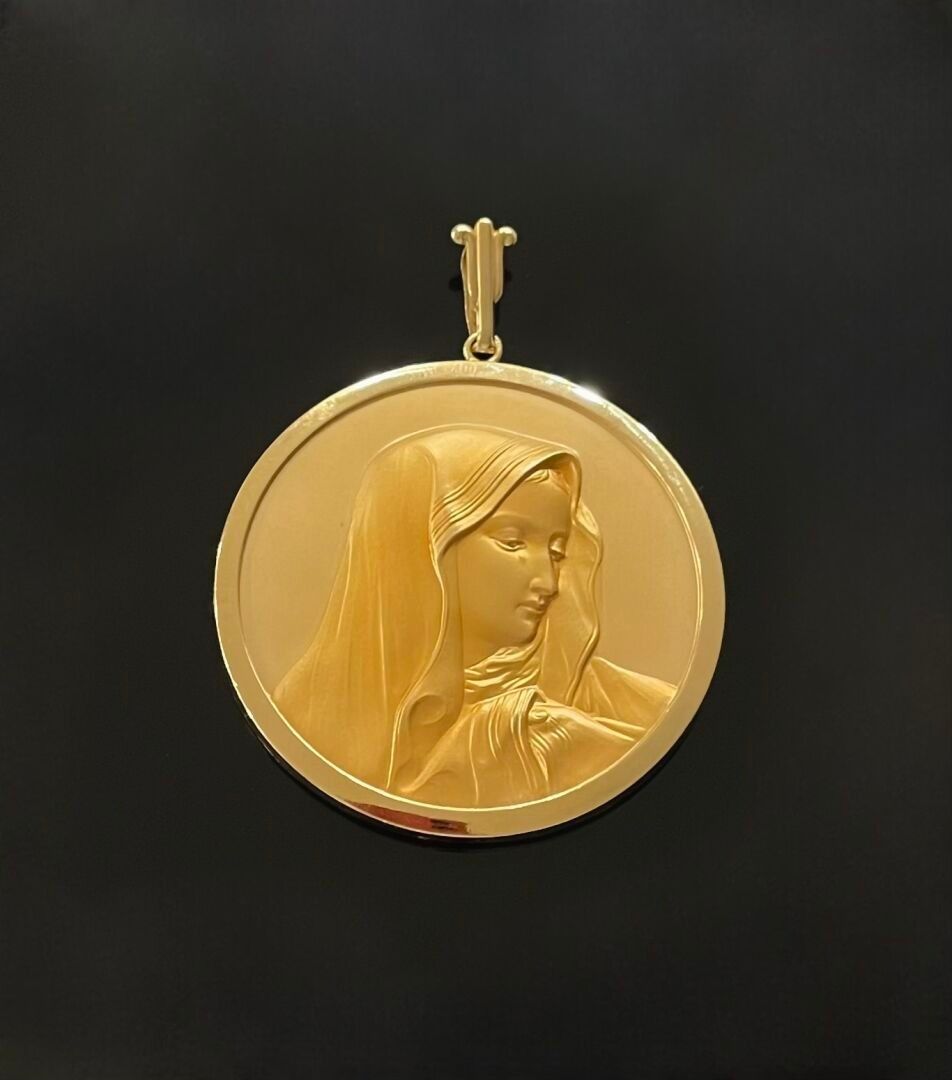 Medallion pendant in yellow gold (750) representing the Virgin Mary