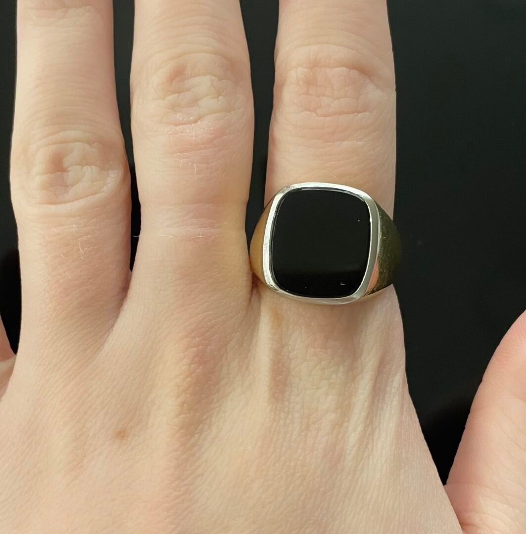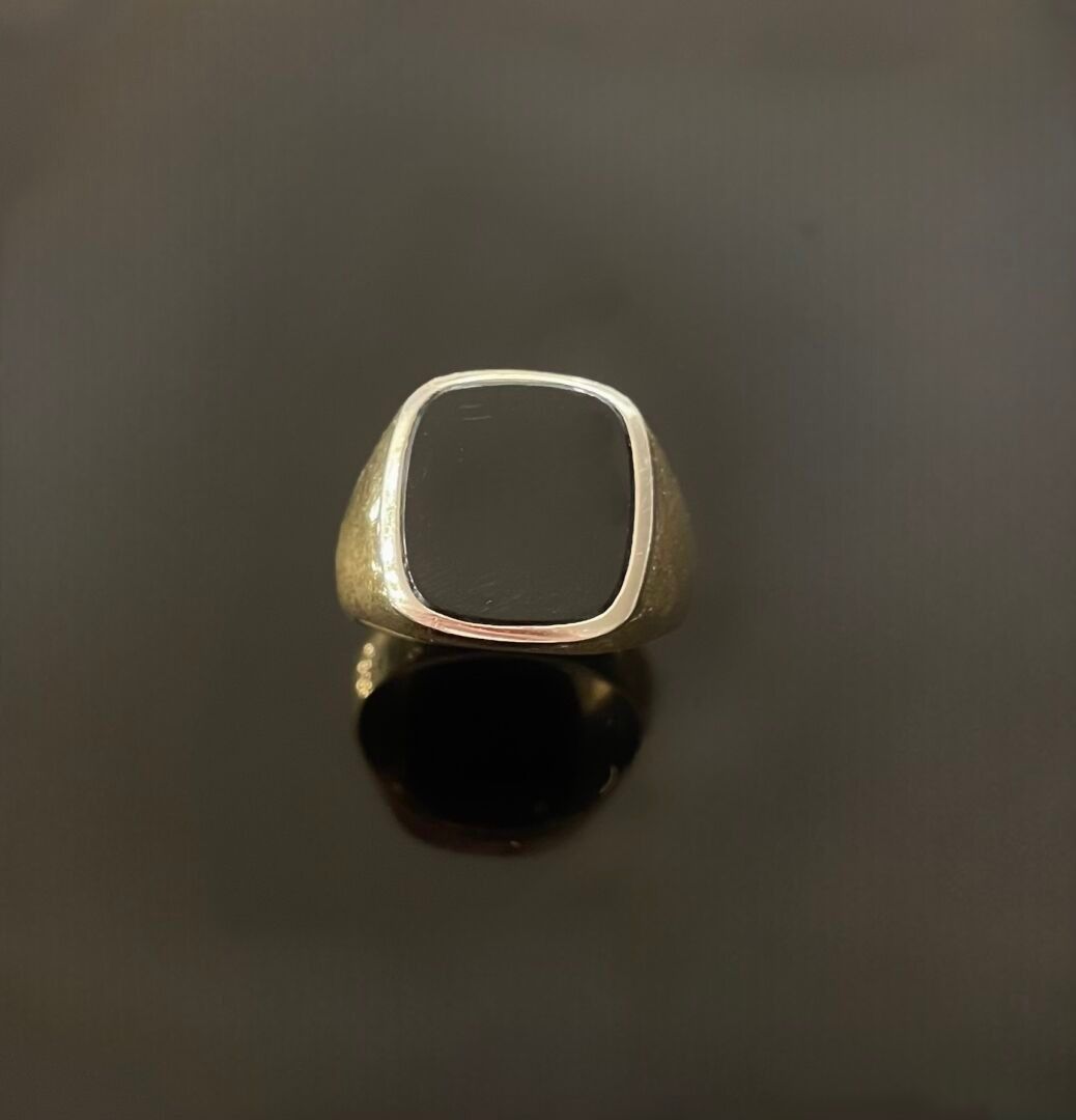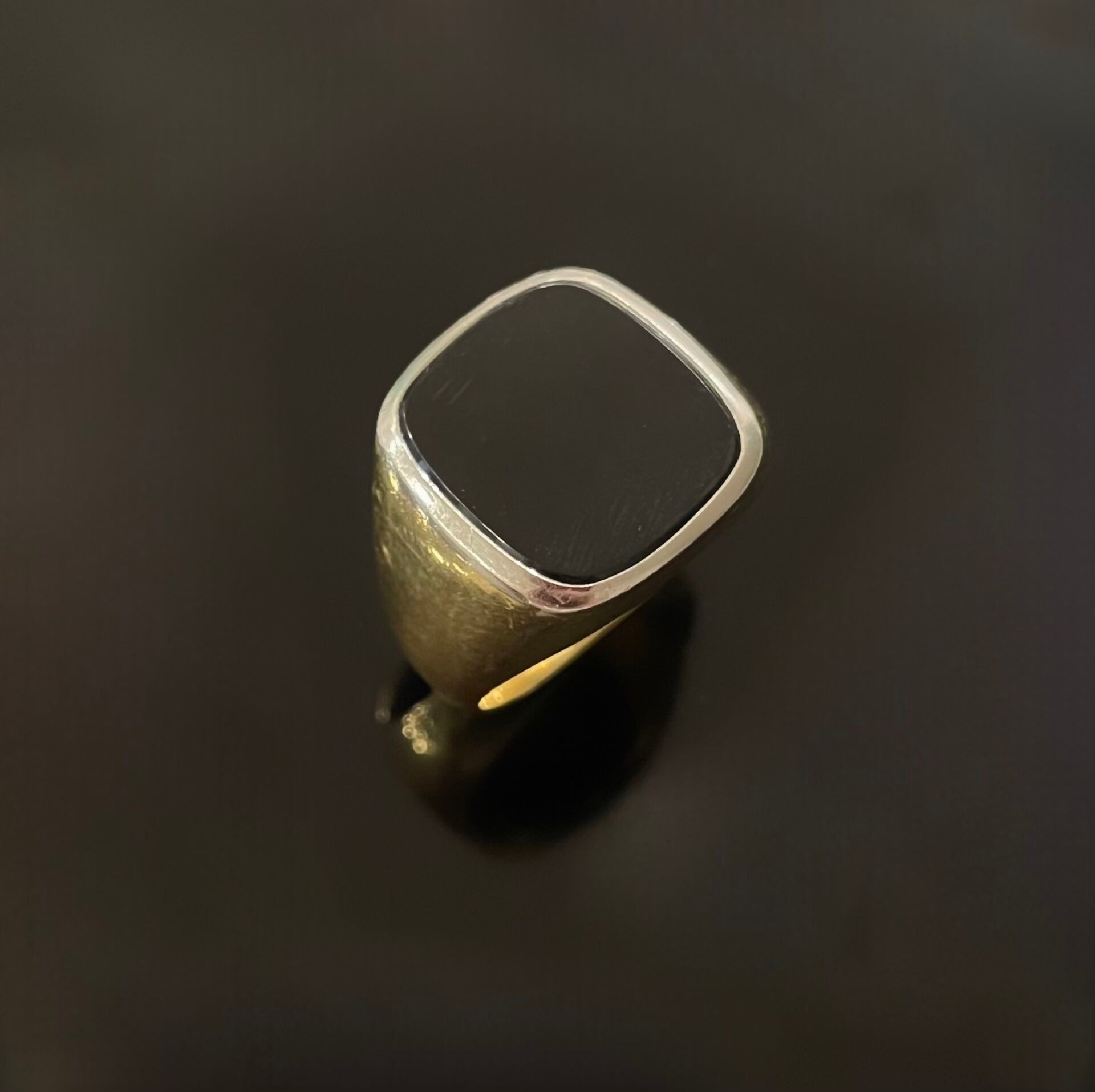 Yellow gold (750) signet ring set with a black stone, probably onyx