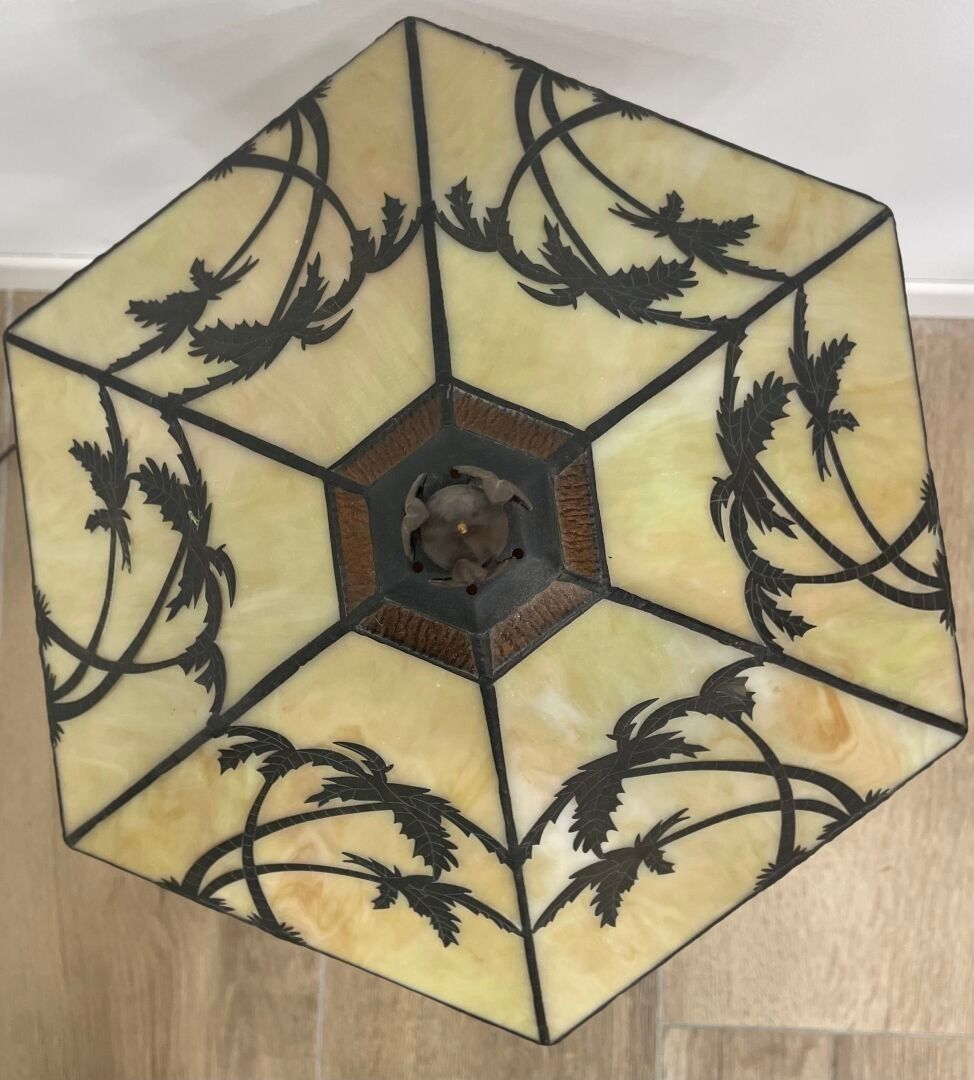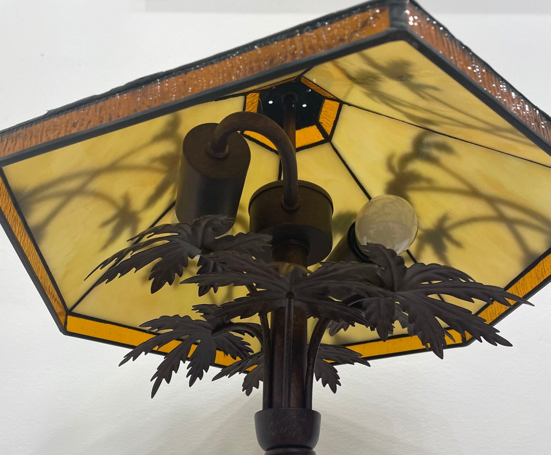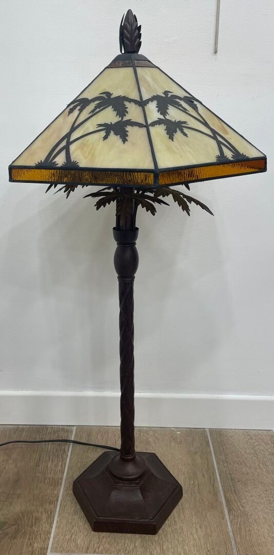 Metal palm tree lamp with pearlescent resin shade coloured i…