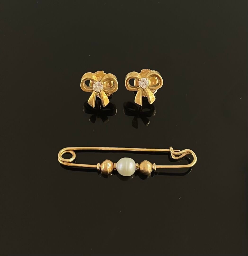 Pair of EAR PUCES in yellow gold (750) set with a knot centr…