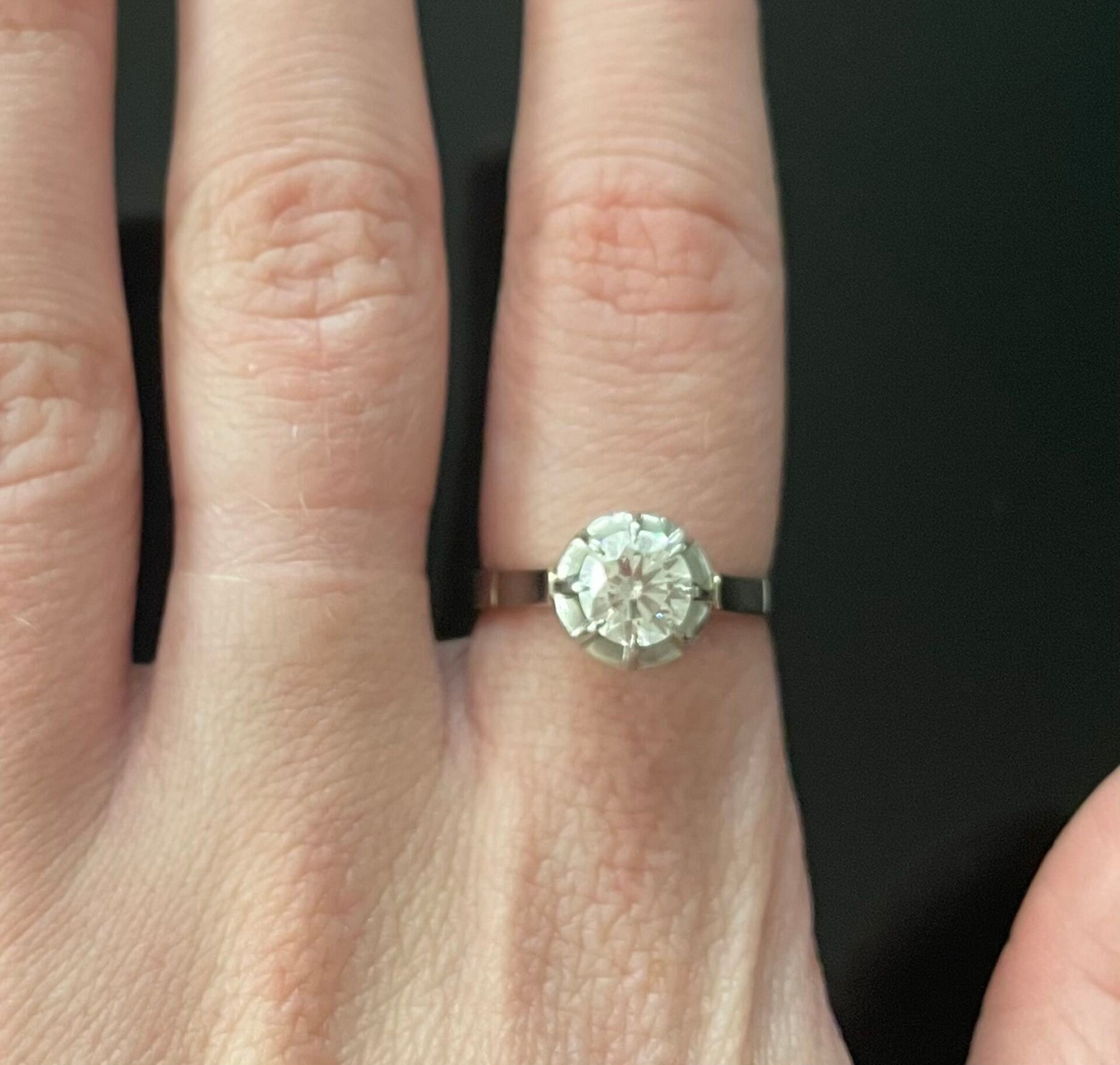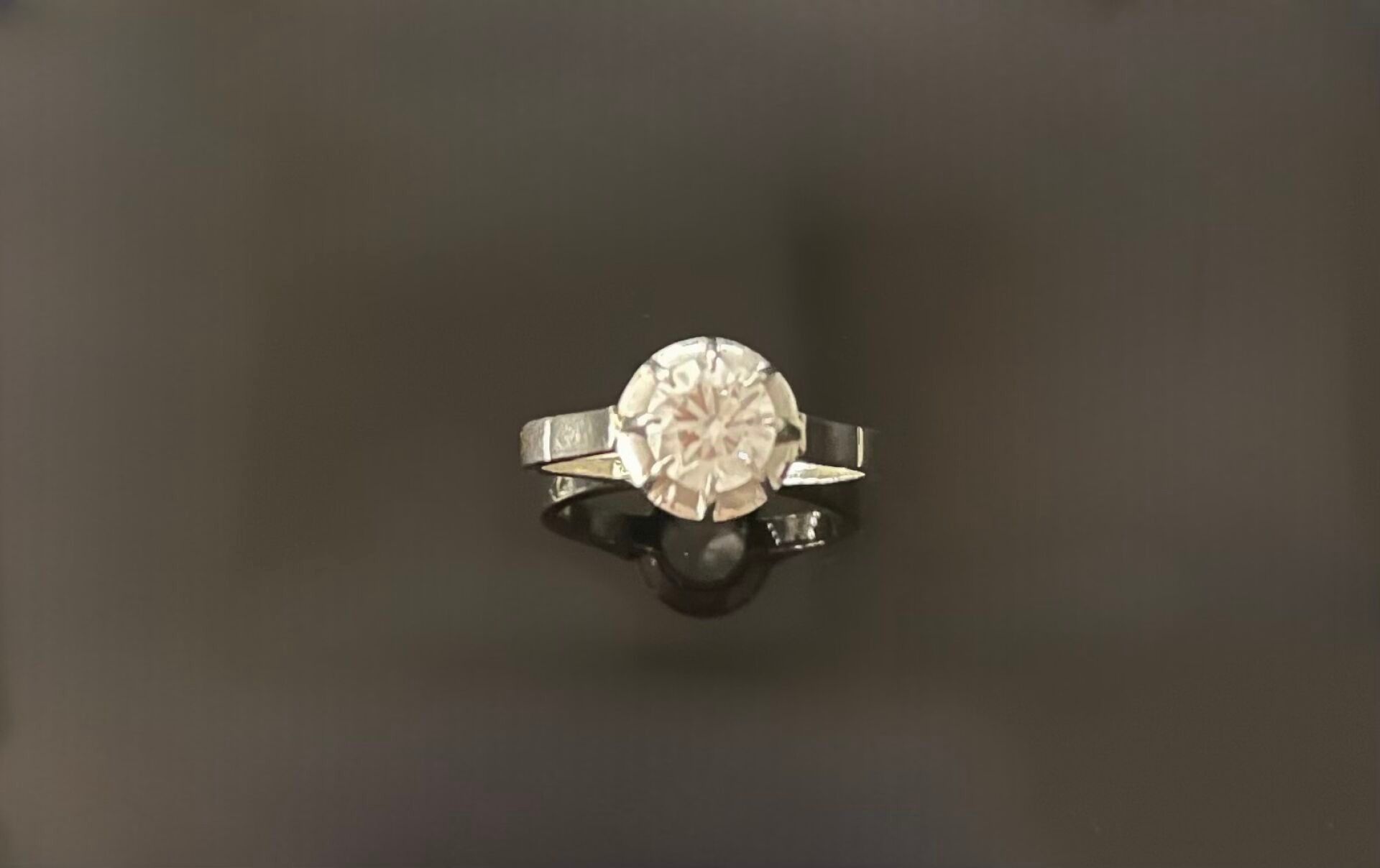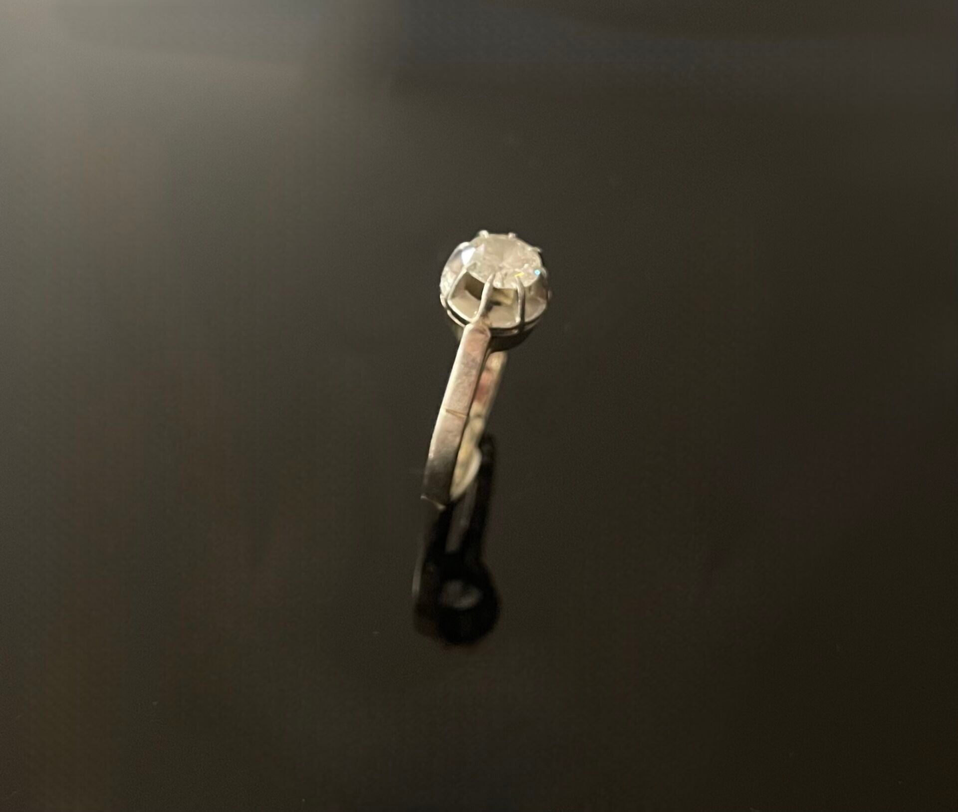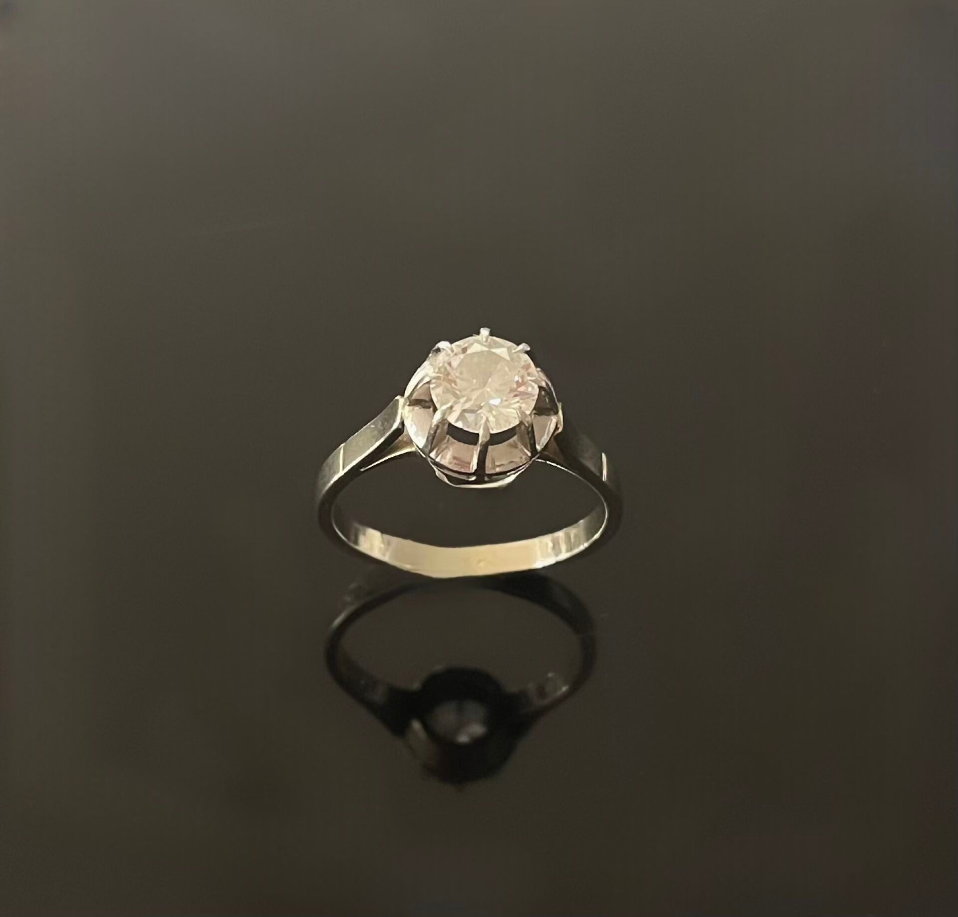 Solitaire ring in white gold (750) set with a diamond weighing approximately 0.90 ct